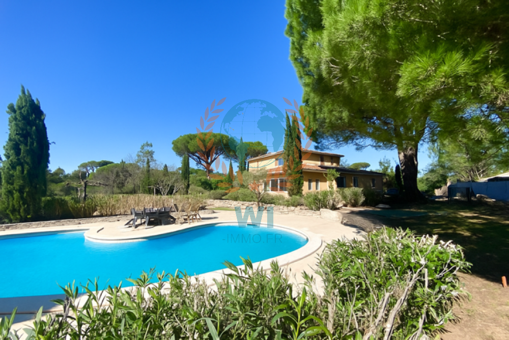 Située dans un domaine sécurisé à 15 min des plages, cette propriété individuelle de 210 m² hab vous séduira pour son environnement et sa vue unique dégagée sur les collines. Composée d'un spacieux et lumineux salon séjour avec sa cuisine ouverte équipée de plus de 65 m² ouvrant sur une large terrasse exposée plein sud, à l'étage : une suite parentale avec dressing et salle d'eau, 2 chambres, salle de bains. Un F2 de 35 m² pouvant offrir une rentabilité locative saisonnière ou recevoir famille et amis !! Un jardin clôturé de 10 800 m², une piscine de 10 X 5, une cuisine d'été de 25 m², garage, abri voiture, abri de jardin. La villa de construction 2011 a été rénovée en 2021. Nombreuses prestations :Chauffage au sol, climatisation, panneaux solaires, alarme, portail électrique, volets roulants électriques, interphone, store, éclairage extérieur, boulodrome, tennis dans la résidence.... Amateurs de tranquilité, cette demeure est pour vous !!
