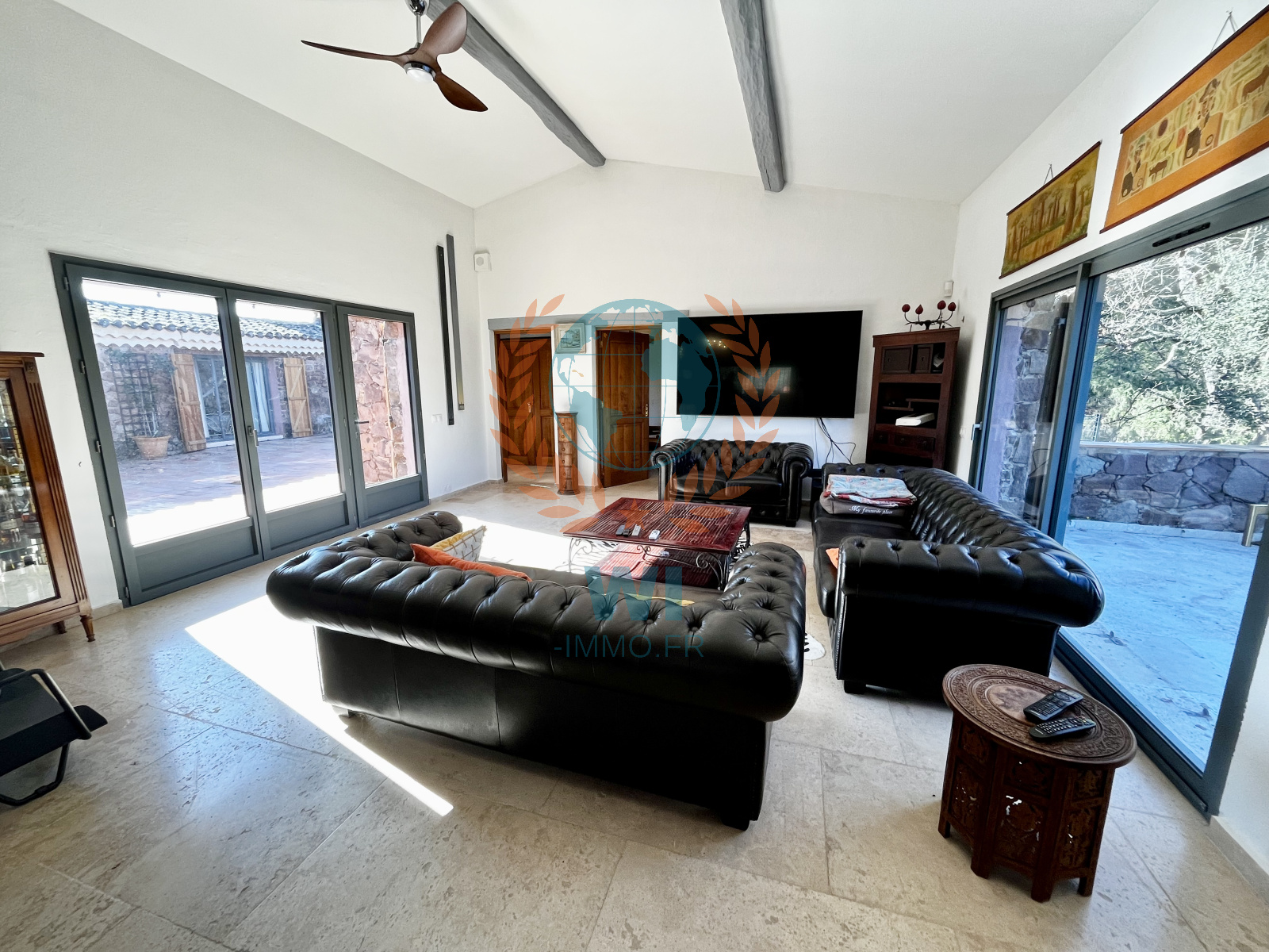 Roquebrune-sur-Argens (83520)Dans un environnement rare et privilégié de Roquebrune-sur-Argens, cette Demeure de charme en Pierres du Pays, entièrement de plain-pied, vous séduira par son bel espace de vie lumineux et chaleureux, sa spacieuse cuisine américaine équipée et ses 3 suites avec salle d'eau privatives.