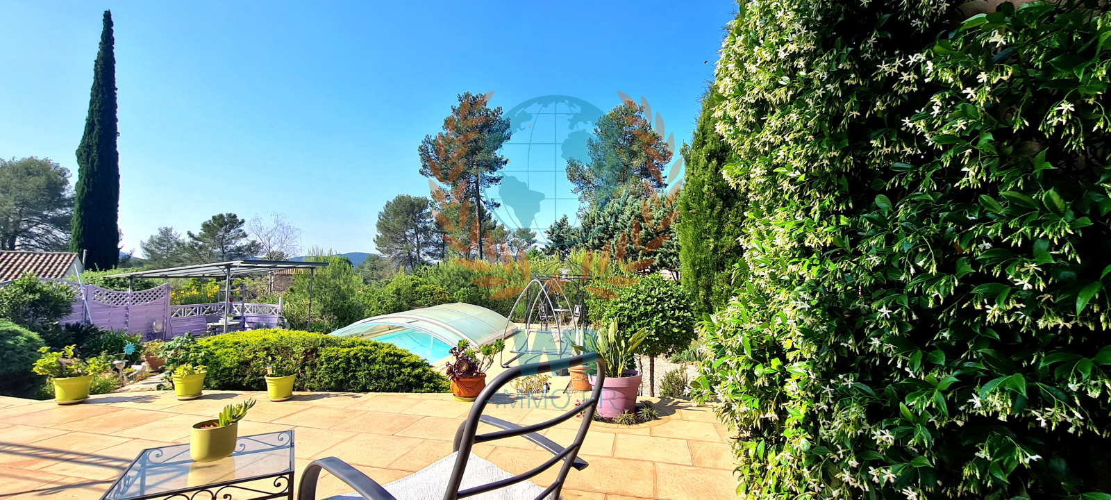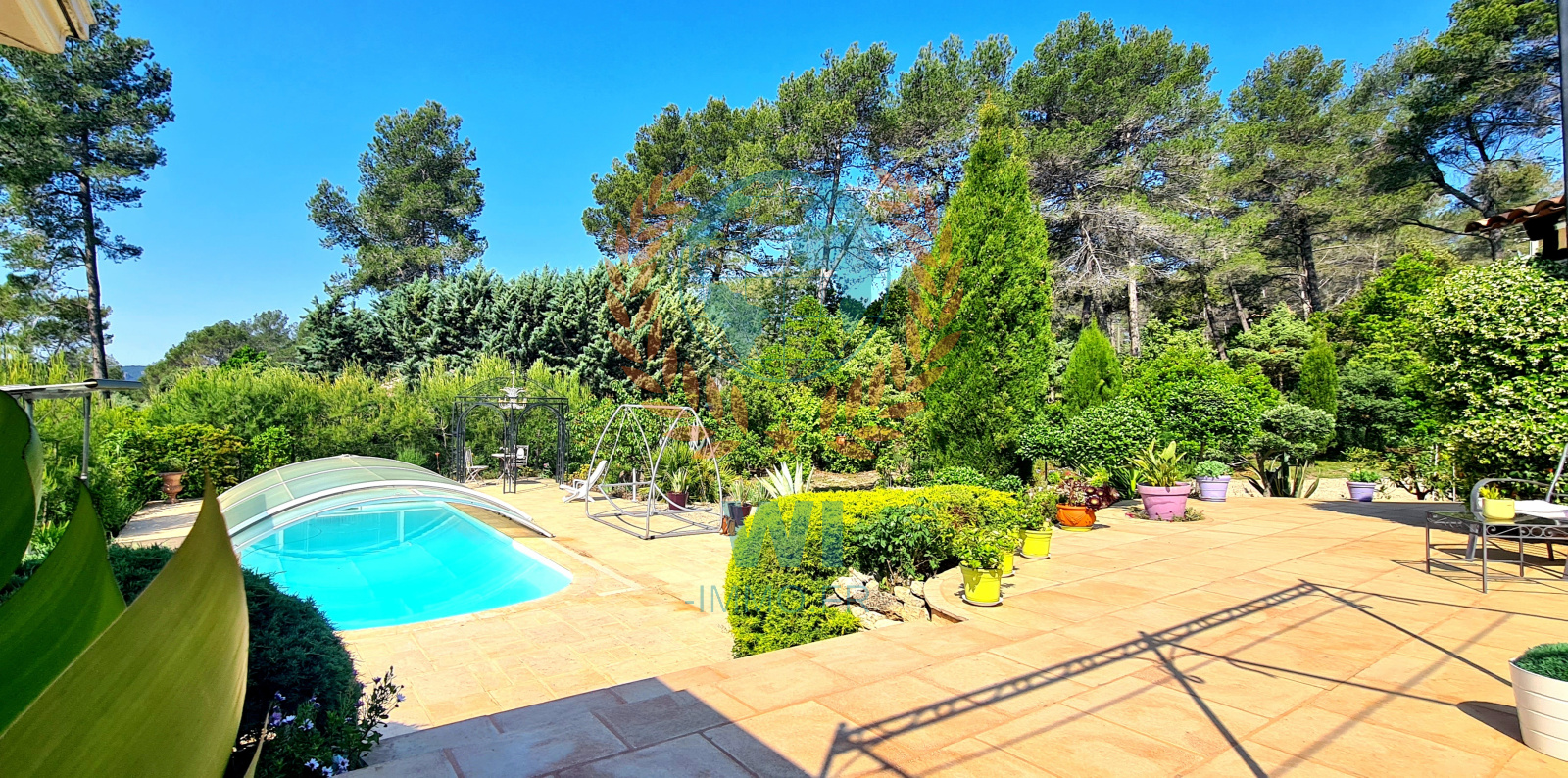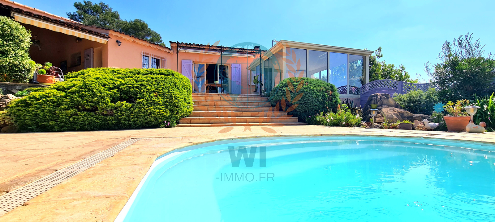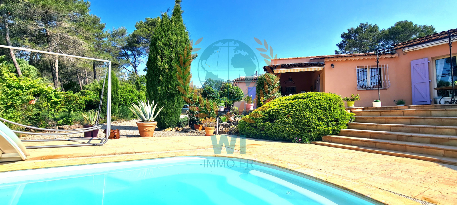 Bagnols-en-Forêt (83600)EXCLUSIVITE - Au calme absolu sur un terrain de 2340 m² se situe cette propriété de plain pied d'une superficie au sol de 196 m² offrant de nombreux atouts : 8 pièces, une grande terrasse avec sa cuisine d'été, une véranda bénéficiant d'une vue sur le magnifique jardin arboré et paysagé d'essences méditerranéennes et sa piscine de 8 x 4 m (au sel). Ses volumes : un salon séjour de 45 m², une cuisine semi-ouverte de 27 m², 5 chambres, 1 salle de bains, 1 salle d'eau, 1 garage. Superbe potentiel pour ce havre de Paix !!!