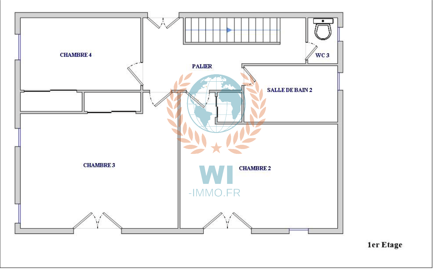 A l'étage 3 belles chambres de 14, 24 et 18m² dont une donnant sur un balcon. Une salle de bain et douche.et un WC indépendant.