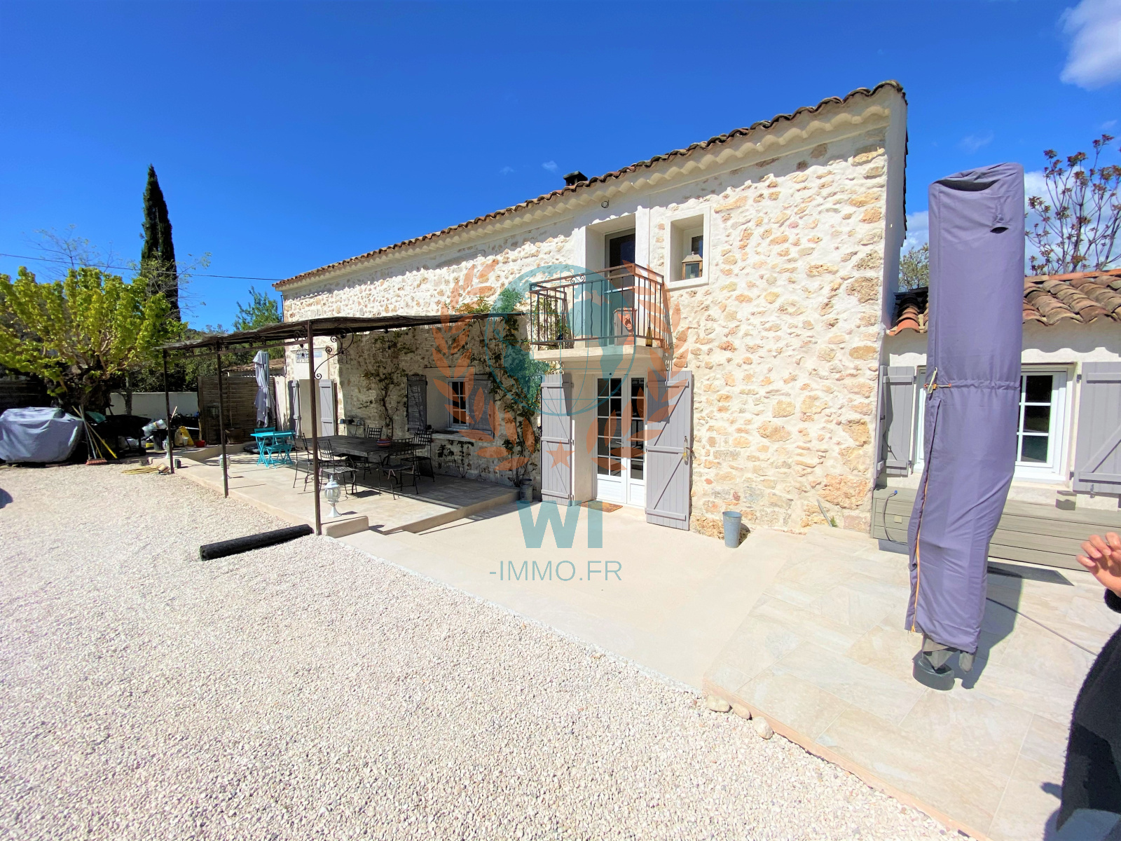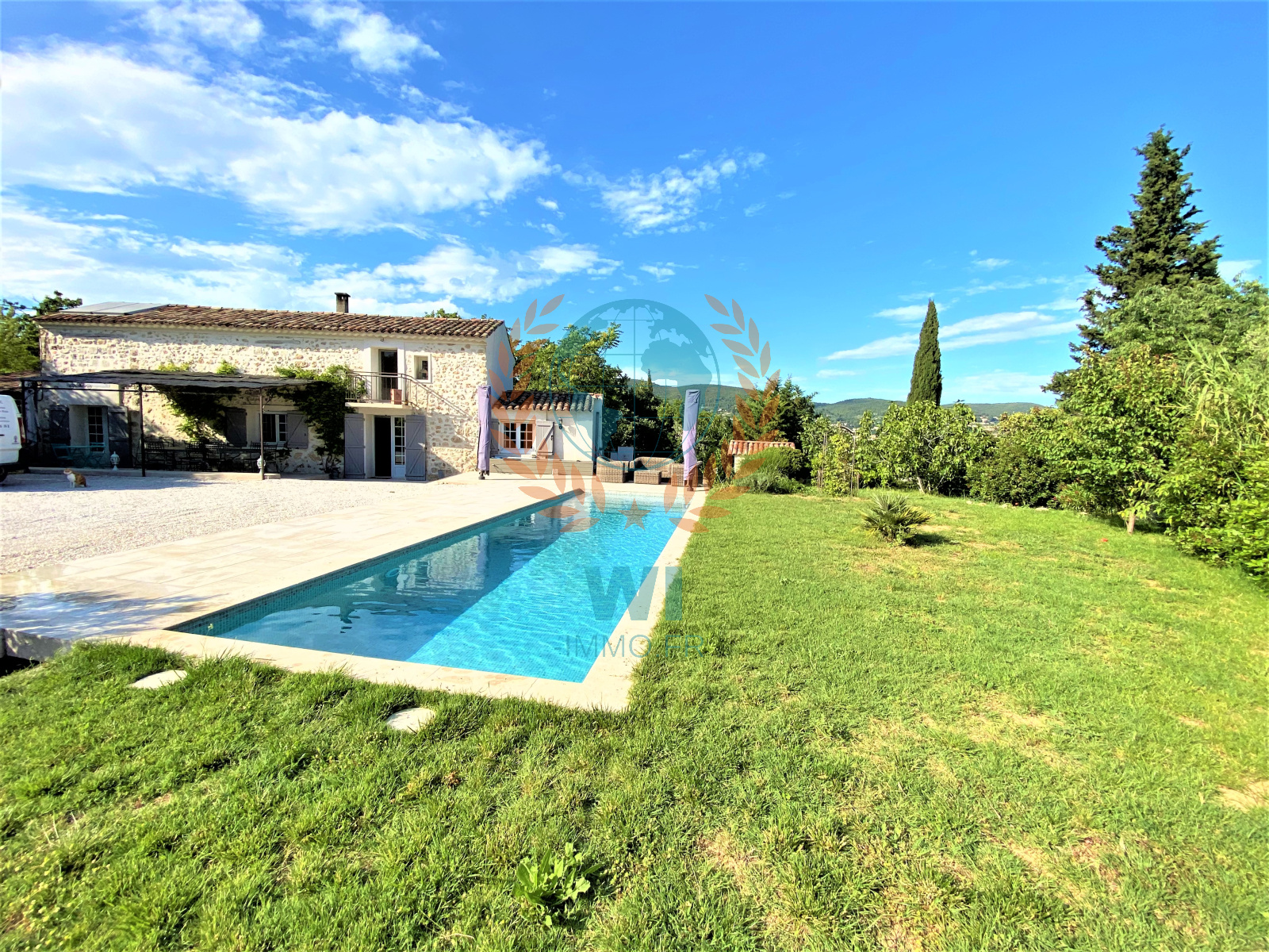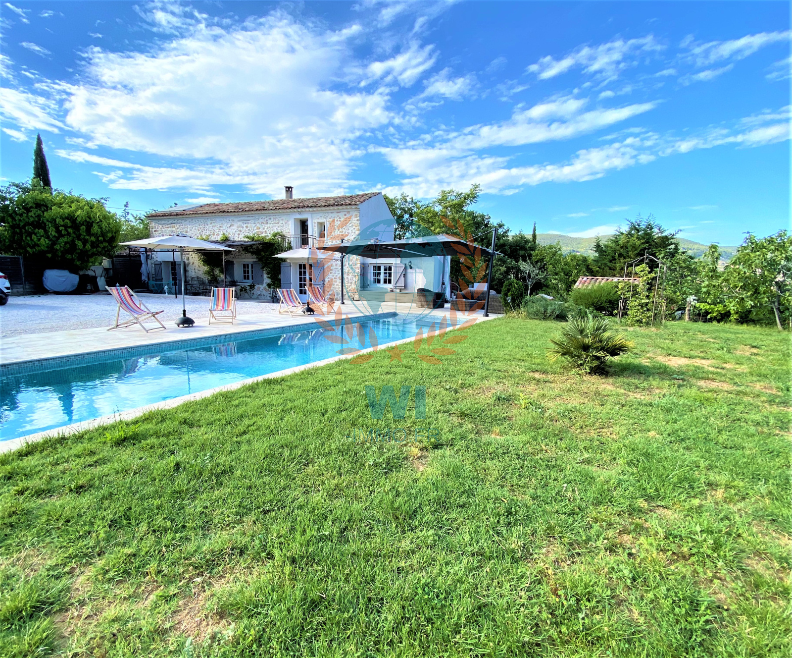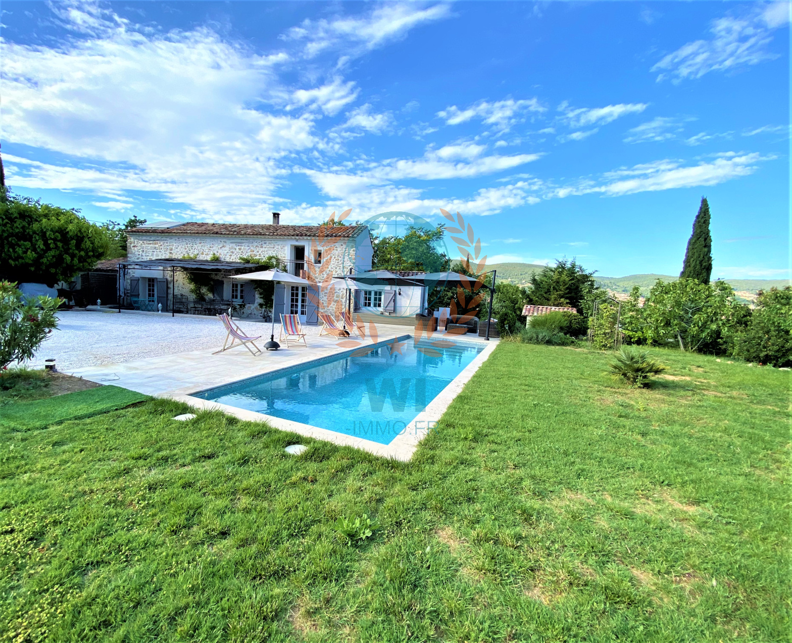 Draguignan (83300)NOUVEAUTE !!! Vous serez séduits par cette superbe demeure de charme en pierres entièrement rénovée avec goût et composée d'une entrée avec rangements, d'un spacieux salon séjour avec cheminée centrale, une grande cuisine ouverte équipée avec baie en galandage ouvrant sur une terrasse, 2 belles chambres avec salles d'eau privatives, un bureau, une chambre, une salle d'eau, wc separé. A l'étage : une suite parentale avec salle de bains, wc et dressing. Un beau jardin paysagé et arboré d'arbres fruitiers de 1430 m² avec une piscine chauffée traditionnelle de 10 x 3 m, panneaux solaires, portail électrique, une remise de 20 m², un cabanon, exposition plein sud, arrosage auto, belles prestations, aucun travaux, beaucoup de cachet. A découvrir rapidement !!!