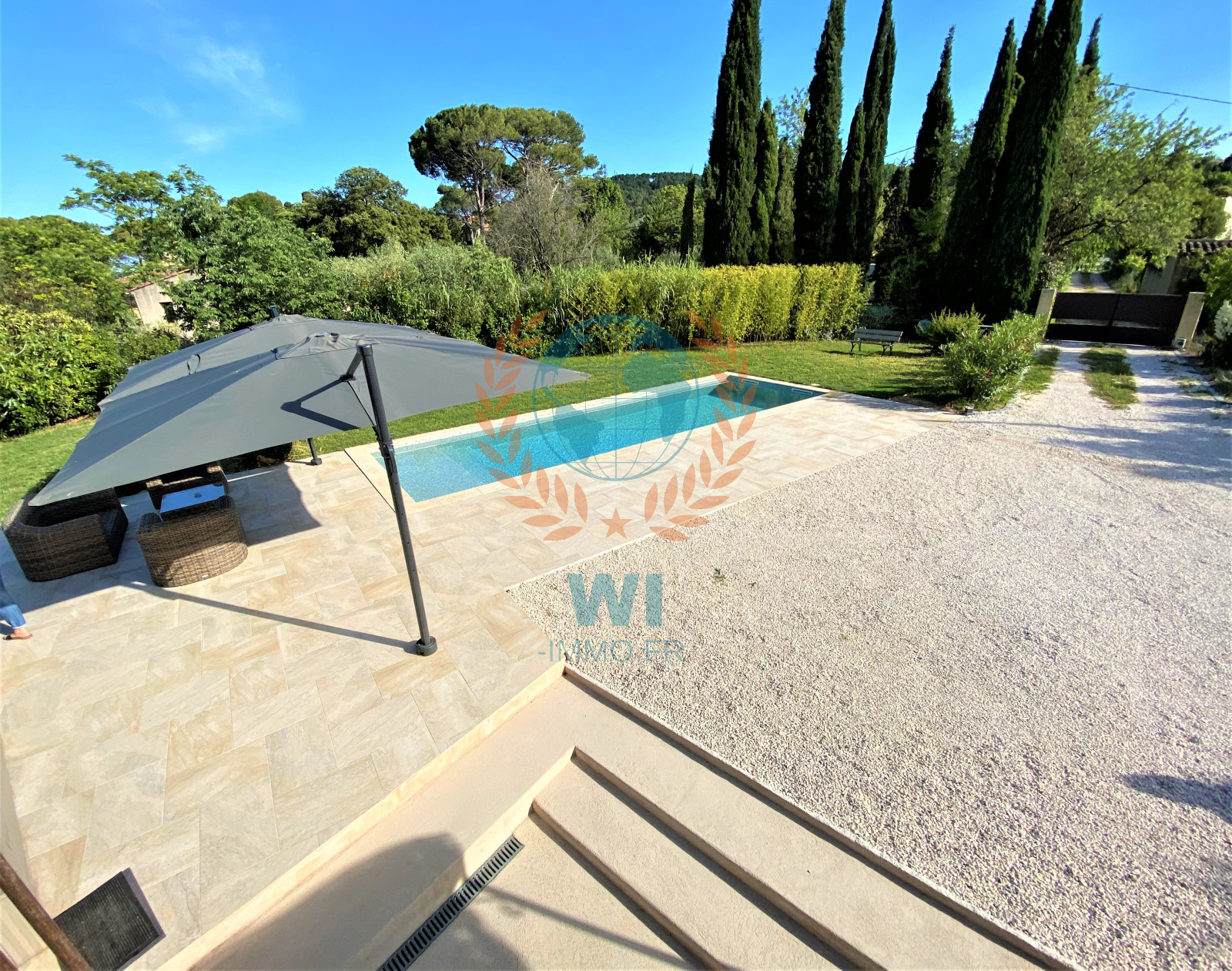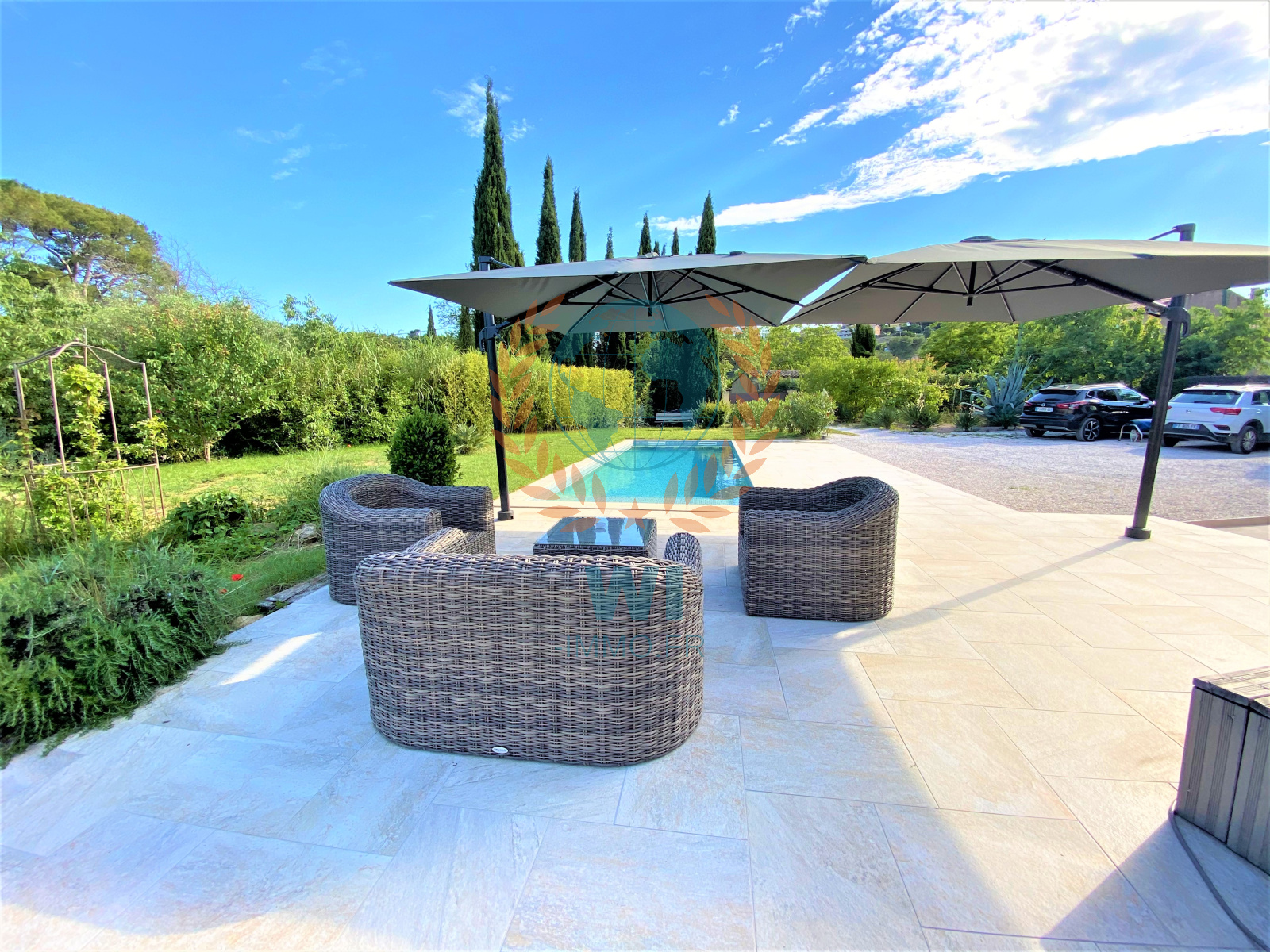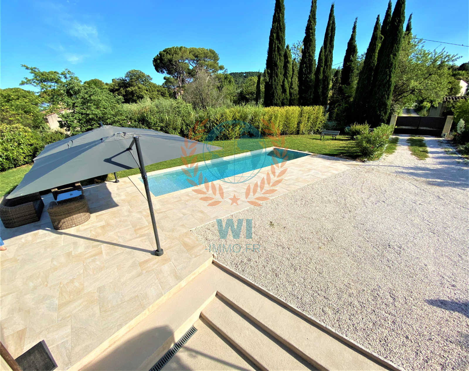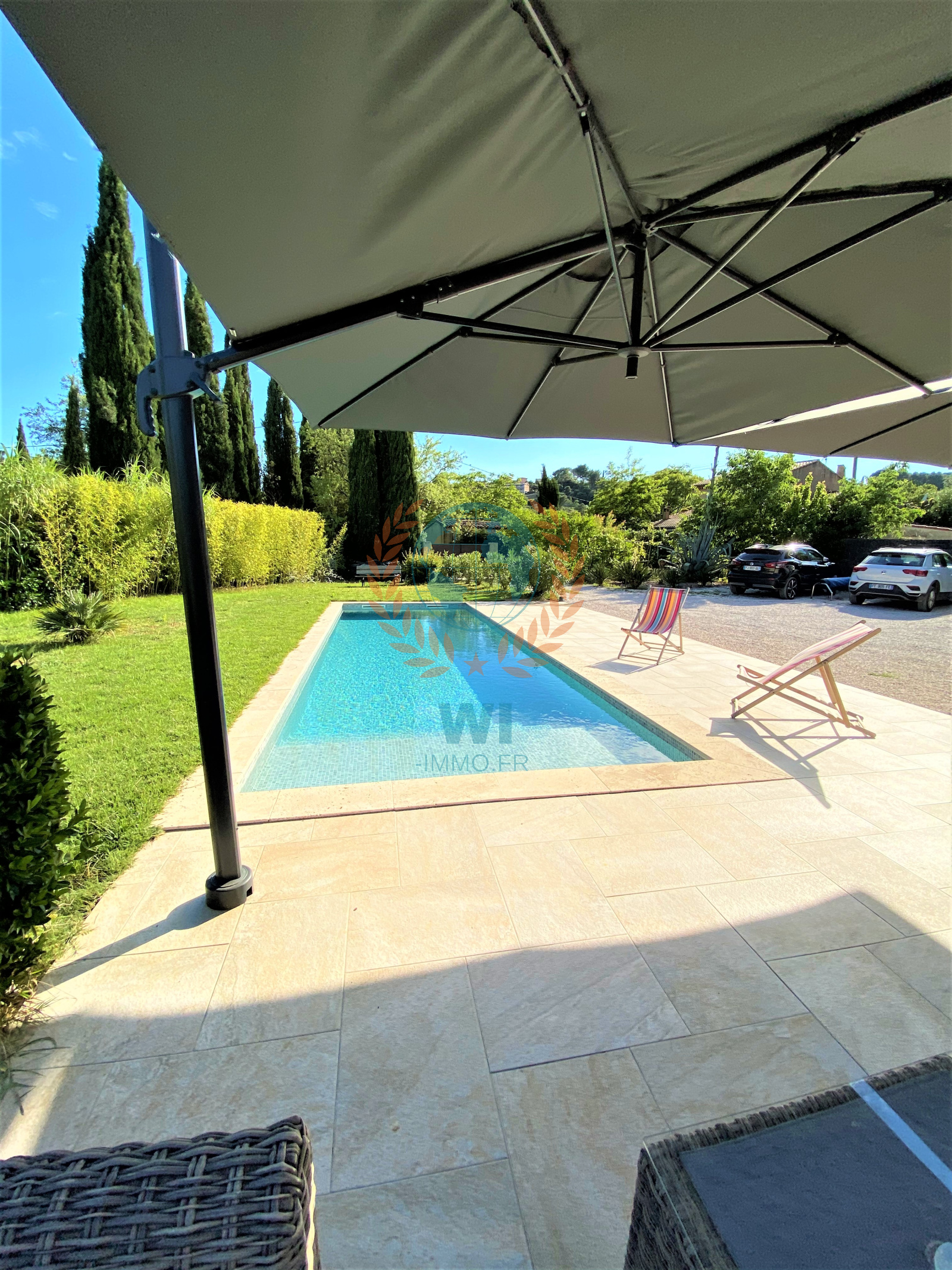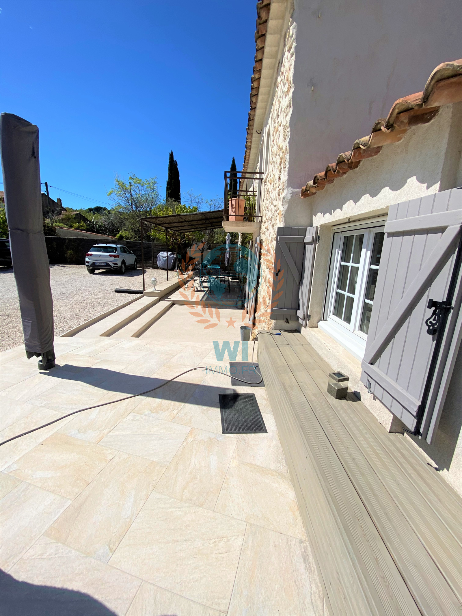 Draguignan (83300)NOUVEAUTE !!! Vous serez séduits par cette superbe demeure de charme en pierres entièrement rénovée avec goût et composée d'une entrée avec rangements, d'un spacieux salon séjour avec cheminée centrale, une grande cuisine ouverte équipée avec baie en galandage ouvrant sur une terrasse, 2 belles chambres avec salles d'eau privatives, un bureau, une chambre, une salle d'eau, wc separé. A l'étage : une suite parentale avec salle de bains, wc et dressing. Un beau jardin paysagé et arboré d'arbres fruitiers de 1430 m² avec une piscine chauffée traditionnelle de 10 x 3 m, panneaux solaires, portail électrique, une remise de 20 m², un cabanon, exposition plein sud, arrosage auto, belles prestations, aucun travaux, beaucoup de cachet. A découvrir rapidement !!!