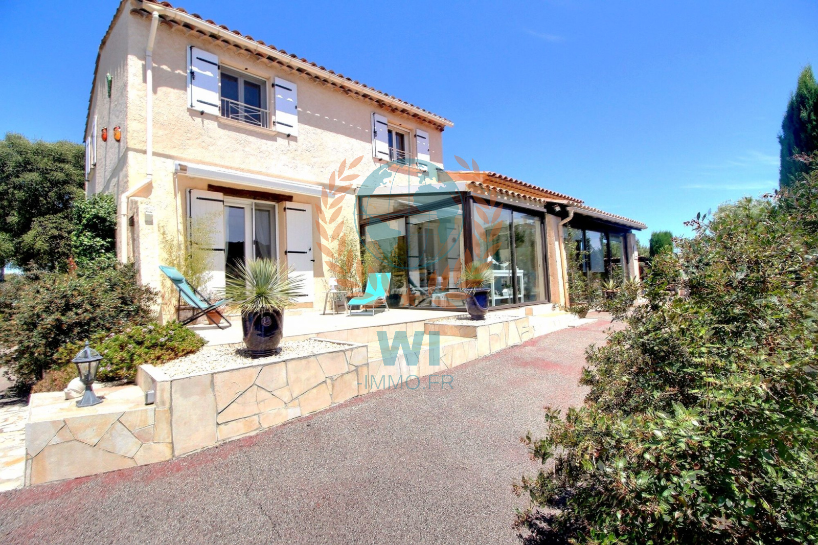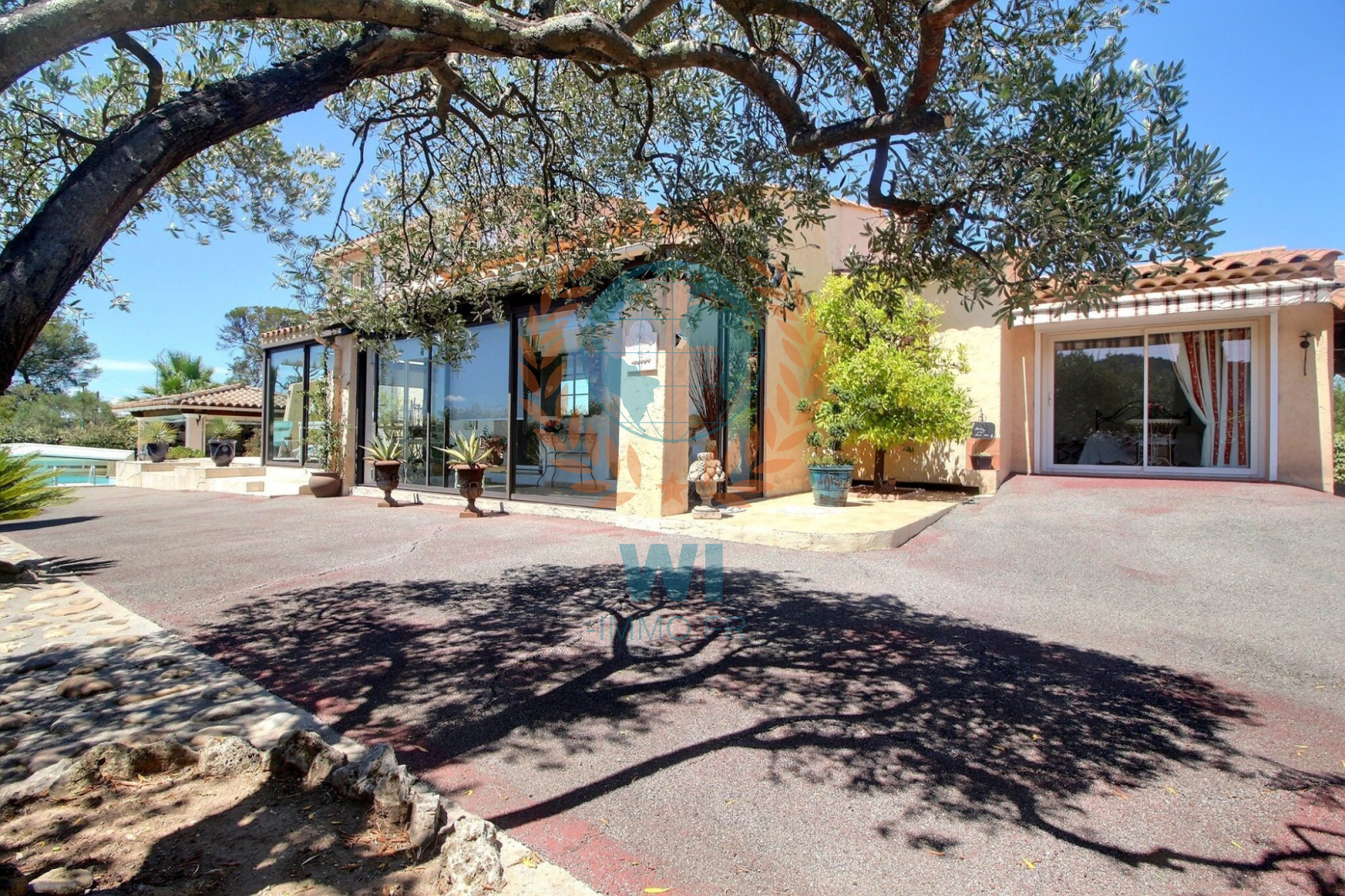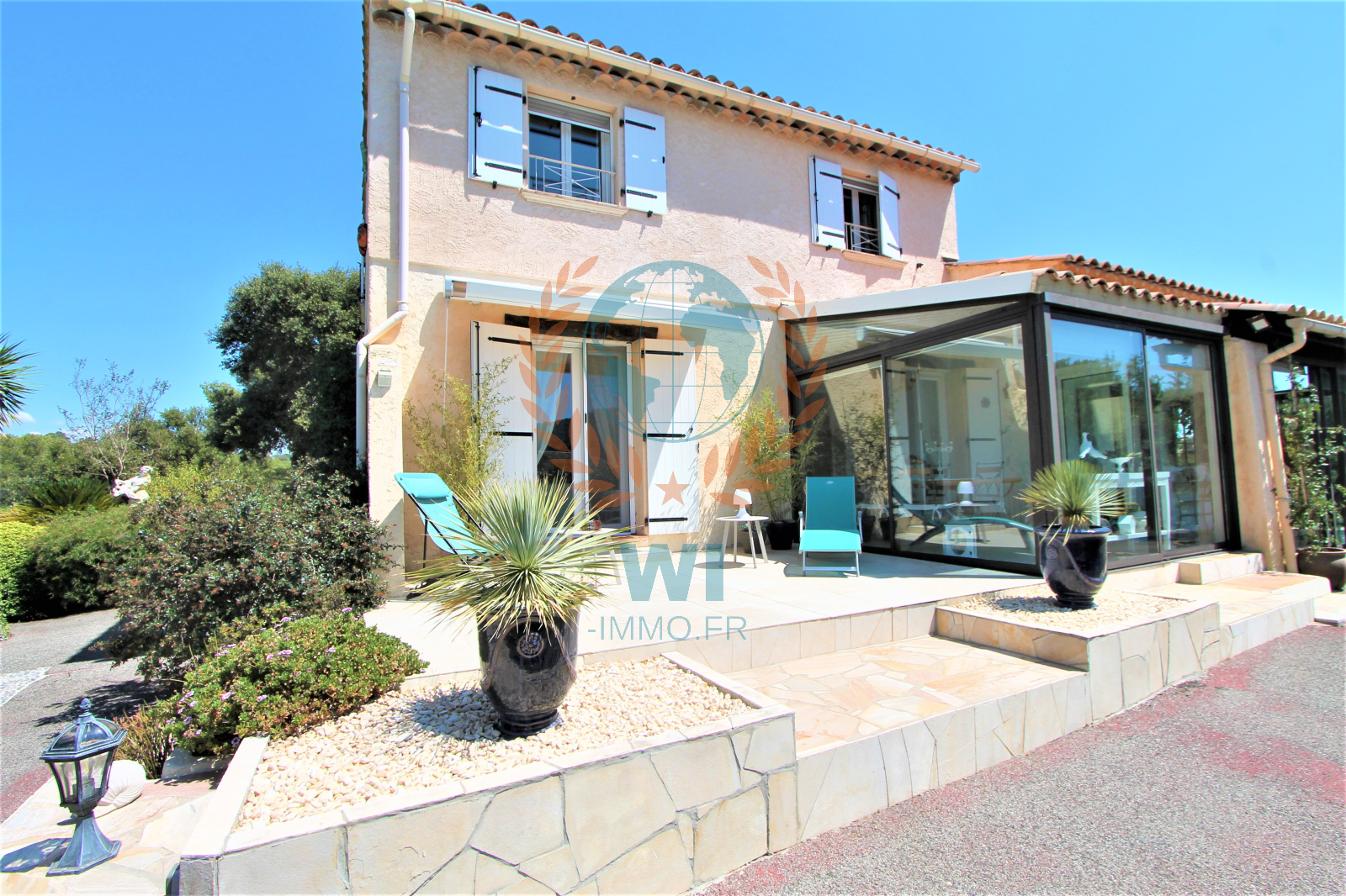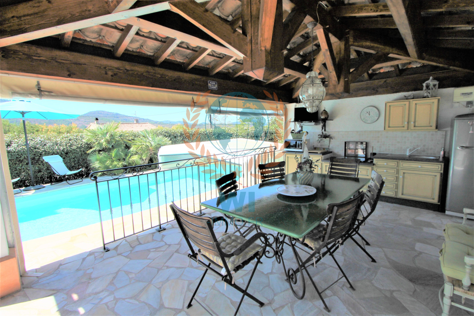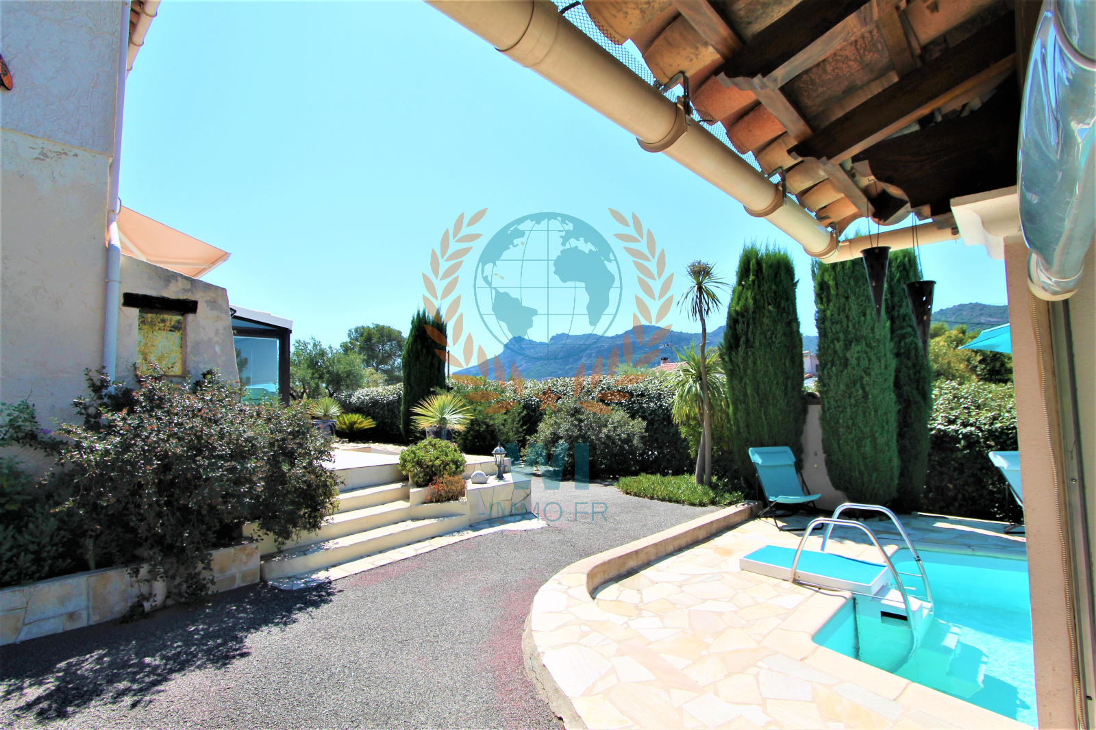 Le Muy (83490)Co Exclusivité ! Dans un quartier calme et recherché, grande villa individuelle de 175 m² en une position dominante et offrant une vue à 360 ° composée d'un salon séjour avec cheminée, une spacieuse cuisine indépendante équipée, une véranda, une chambre, salle de bains et dressing. A l'étage : 2 chambres, une salle d'eau, un bureau. Un studio de 16 m² entièrement aménagé. Un abri voiture, beau jardin paysagé et clôturé avec une piscine de 8 x 4 m couverte avec un pool-house et sa cuisine équipée. Très belle vue dégagée sur le Rocher de Roquebrune, exposition plein sud. Etat impeccable, aucun travaux à prévoir !! rare à la vente.