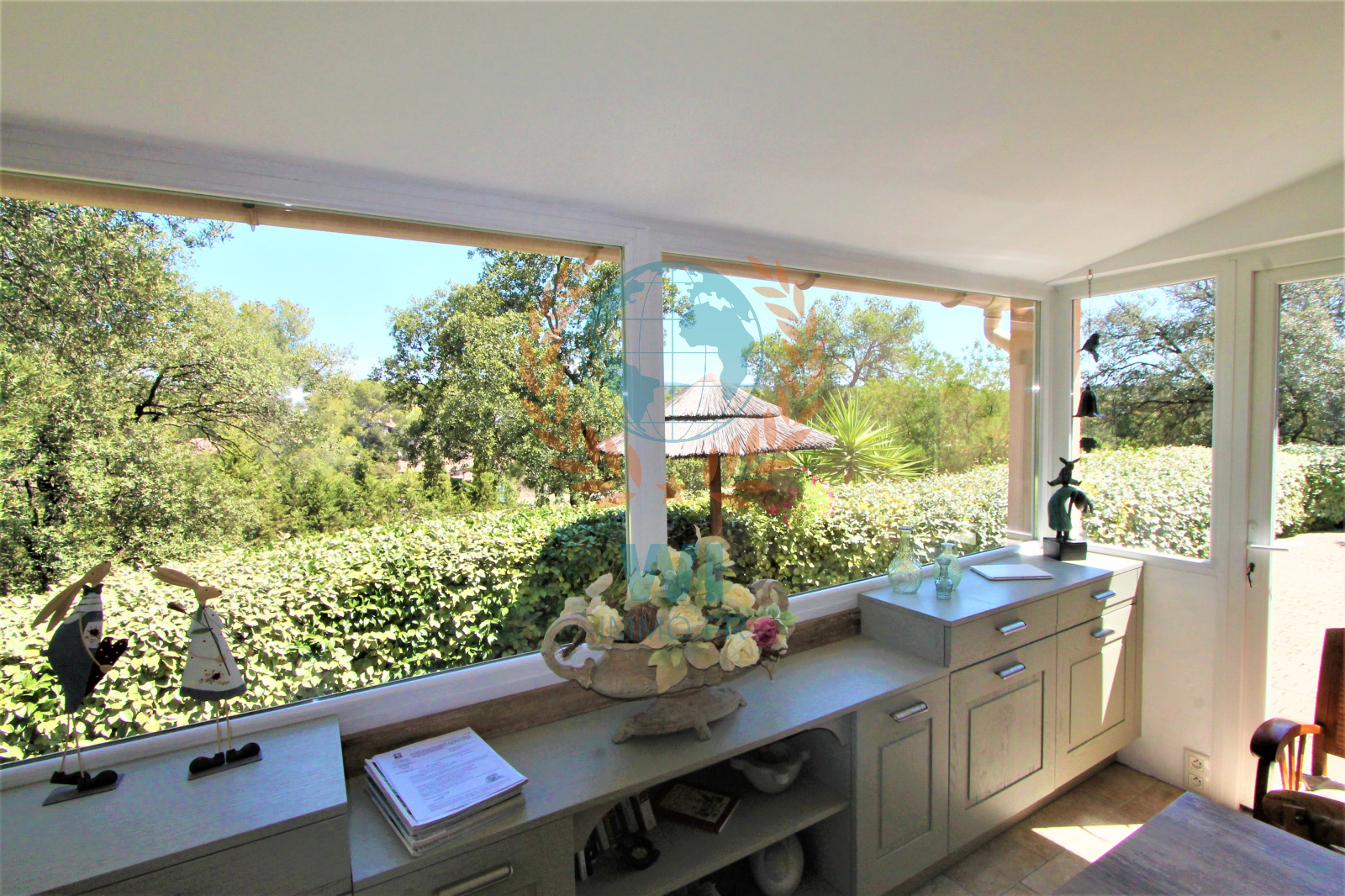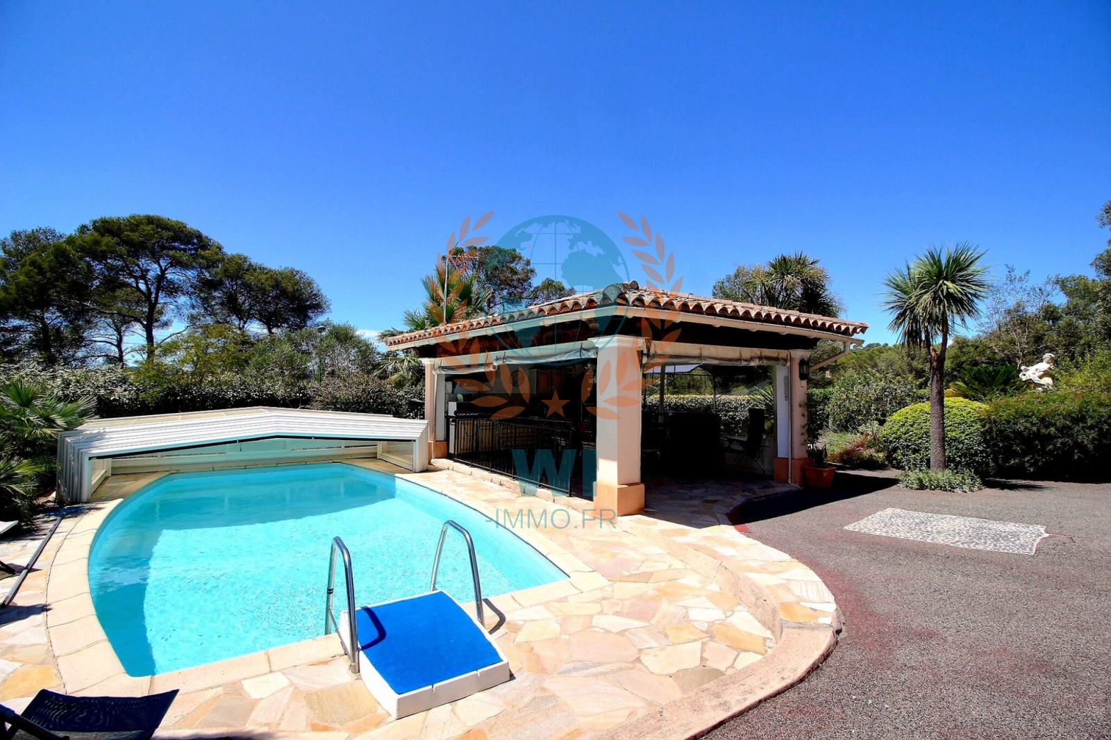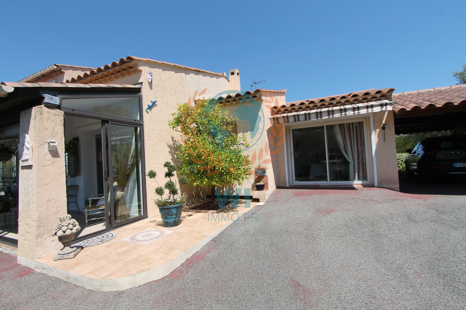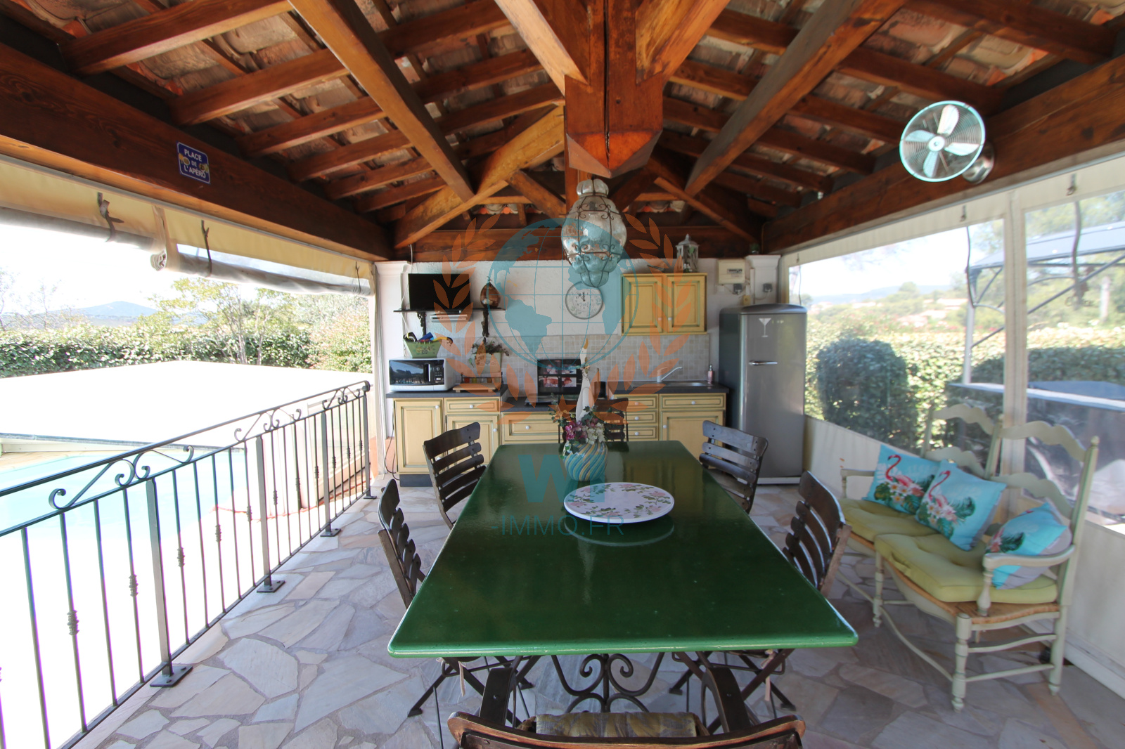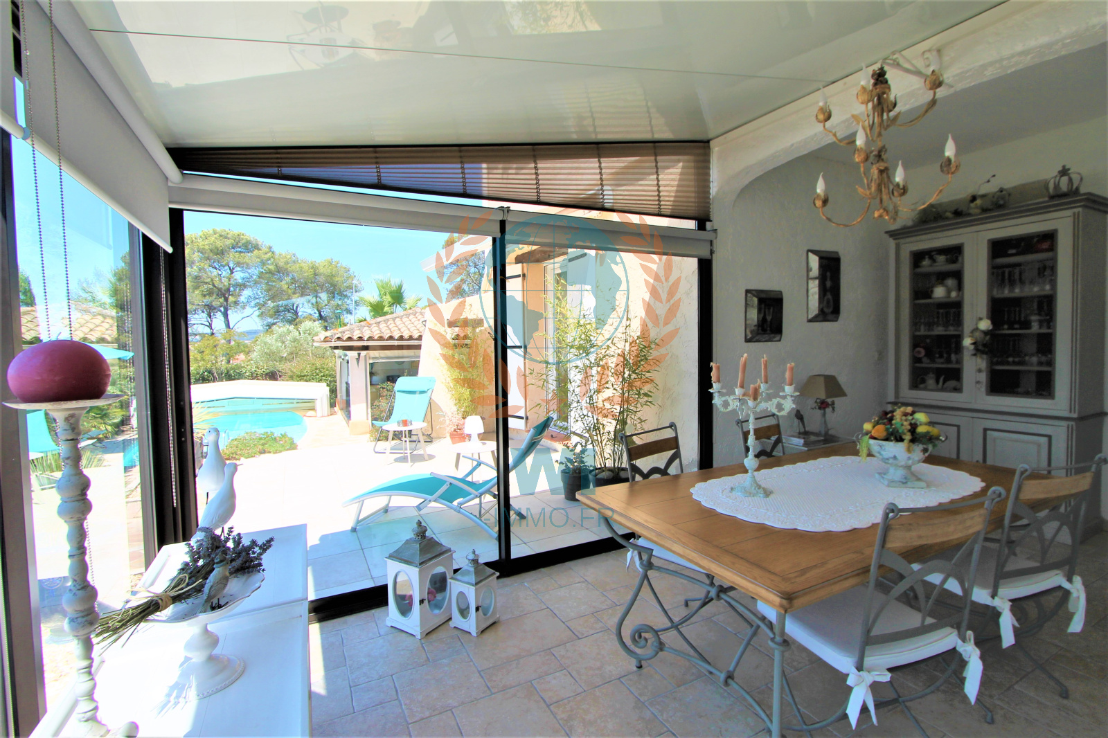 Le Muy (83490)Co Exclusivité ! Dans un quartier calme et recherché, grande villa individuelle de 175 m² en une position dominante et offrant une vue à 360 ° composée d'un salon séjour avec cheminée, une spacieuse cuisine indépendante équipée, une véranda, une chambre, salle de bains et dressing. A l'étage : 2 chambres, une salle d'eau, un bureau. Un studio de 16 m² entièrement aménagé. Un abri voiture, beau jardin paysagé et clôturé avec une piscine de 8 x 4 m couverte avec un pool-house et sa cuisine équipée. Très belle vue dégagée sur le Rocher de Roquebrune, exposition plein sud. Etat impeccable, aucun travaux à prévoir !! rare à la vente.