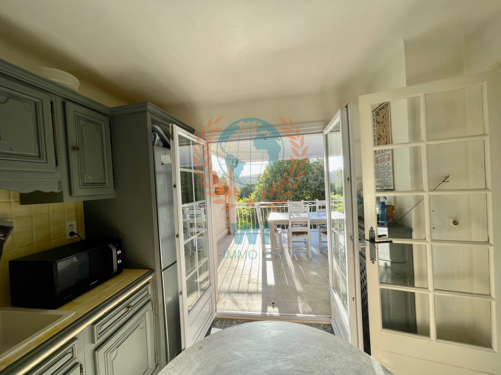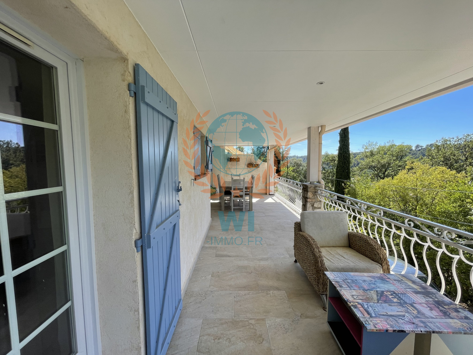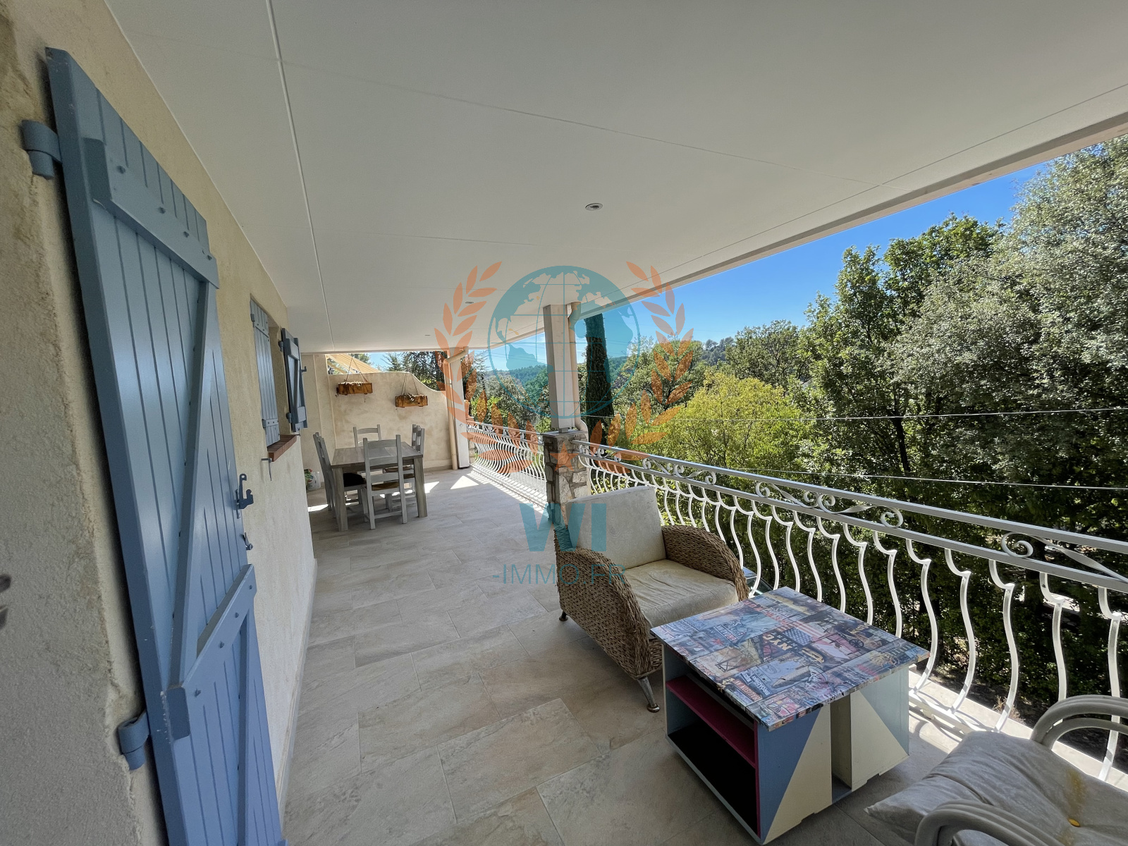 Trans-en-Provence (83720)EXCLUSIVITE - Située dans un quartier calme, très belle villa mitoyenne de 120 m² entièrement rénovée et composée d'un salon séjour avec cheminée, une cuisine séparée équipée, 2 chambres avec placards, une salle de bains. Grande terrasse couverte de 35 m² offrant une jolie dégagée sur les hauteurs sans vis-à-vis. A l'étage par un accès exterieur et indépendant : un deux pièces refait à neuf, un jardin en restanques clôturé et arboré de 936 m² avec un chalet, 2 garages, piscinable et possibilité d'agrandissement par l'atelier. Beaucoup de potentiel !! A visiter rapidement.