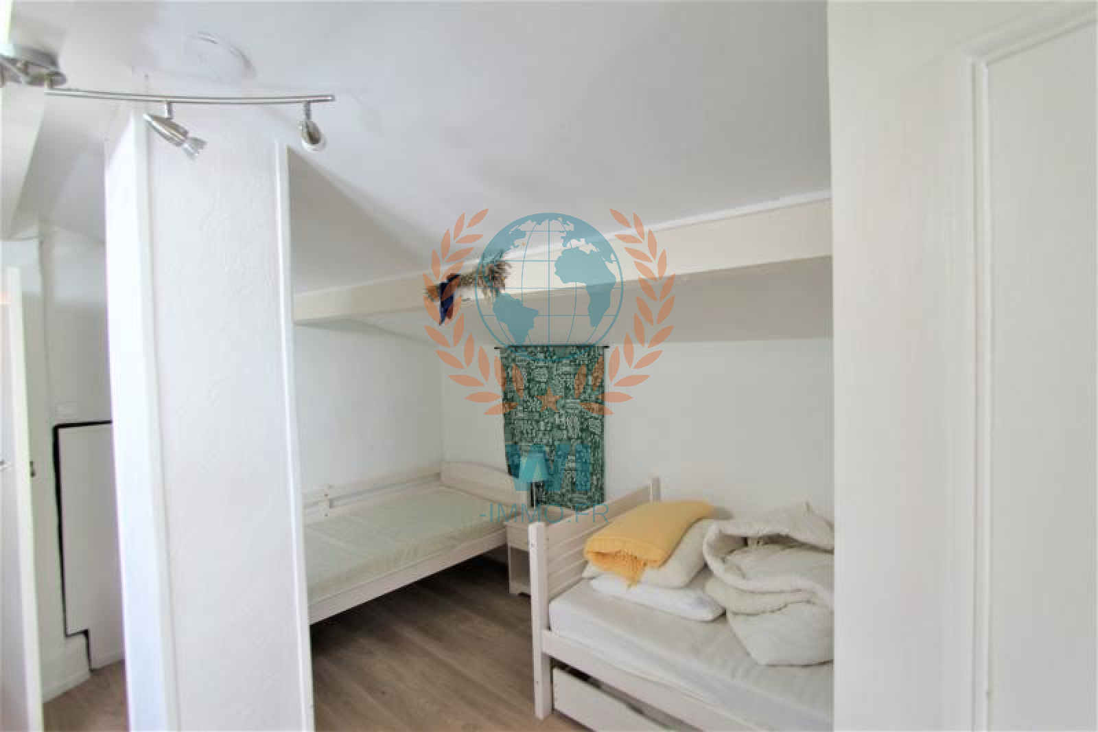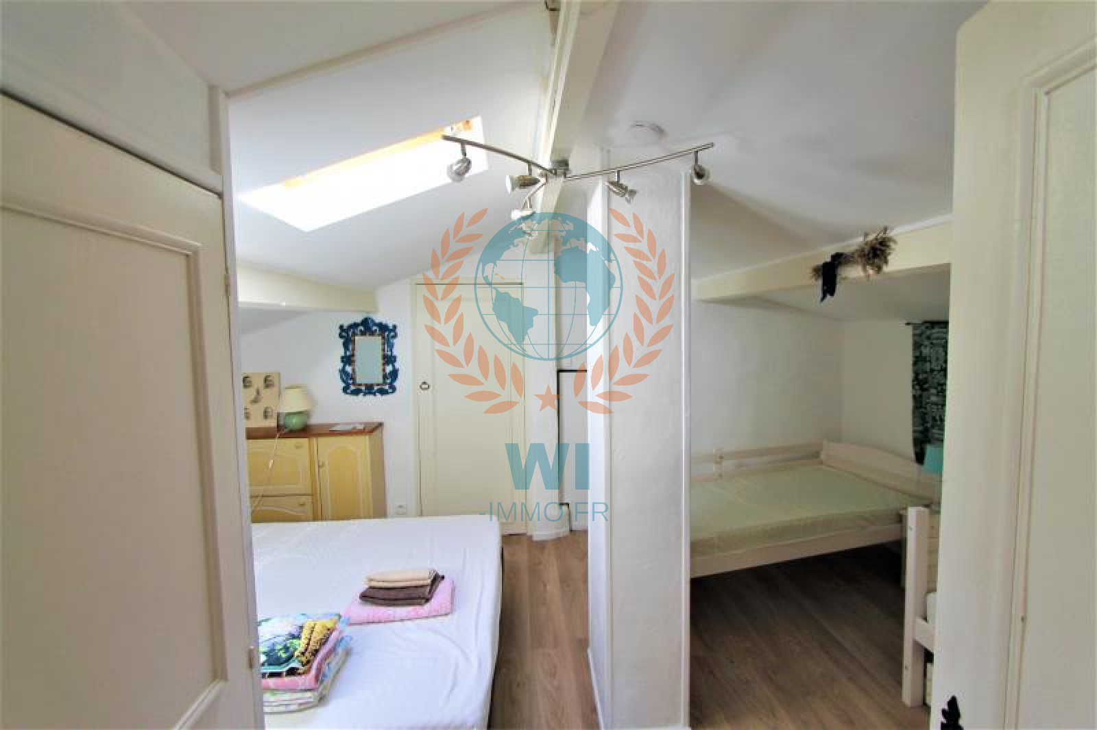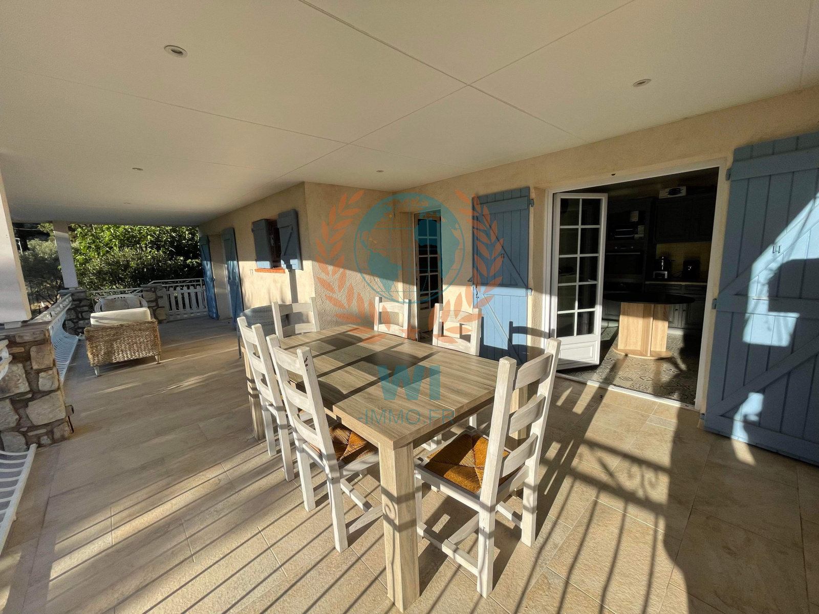 Trans-en-Provence (83720)EXCLUSIVITE - Située dans un quartier calme, très belle villa mitoyenne de 120 m² entièrement rénovée et composée d'un salon séjour avec cheminée, une cuisine séparée équipée, 2 chambres avec placards, une salle de bains. Grande terrasse couverte de 35 m² offrant une jolie dégagée sur les hauteurs sans vis-à-vis. A l'étage par un accès exterieur et indépendant : un deux pièces refait à neuf, un jardin en restanques clôturé et arboré de 936 m² avec un chalet, 2 garages, piscinable et possibilité d'agrandissement par l'atelier. Beaucoup de potentiel !! A visiter rapidement.