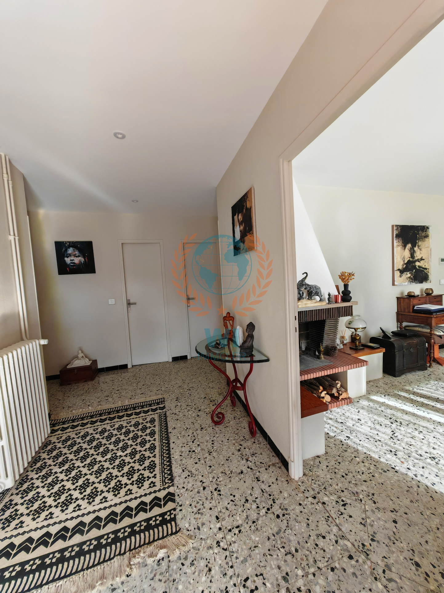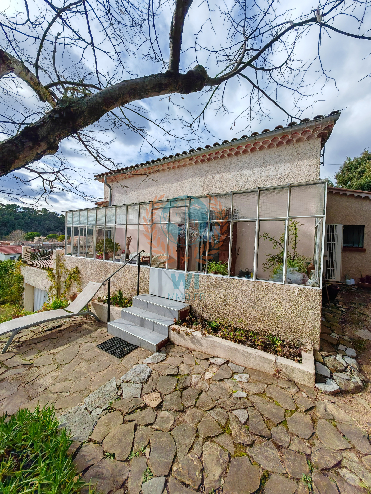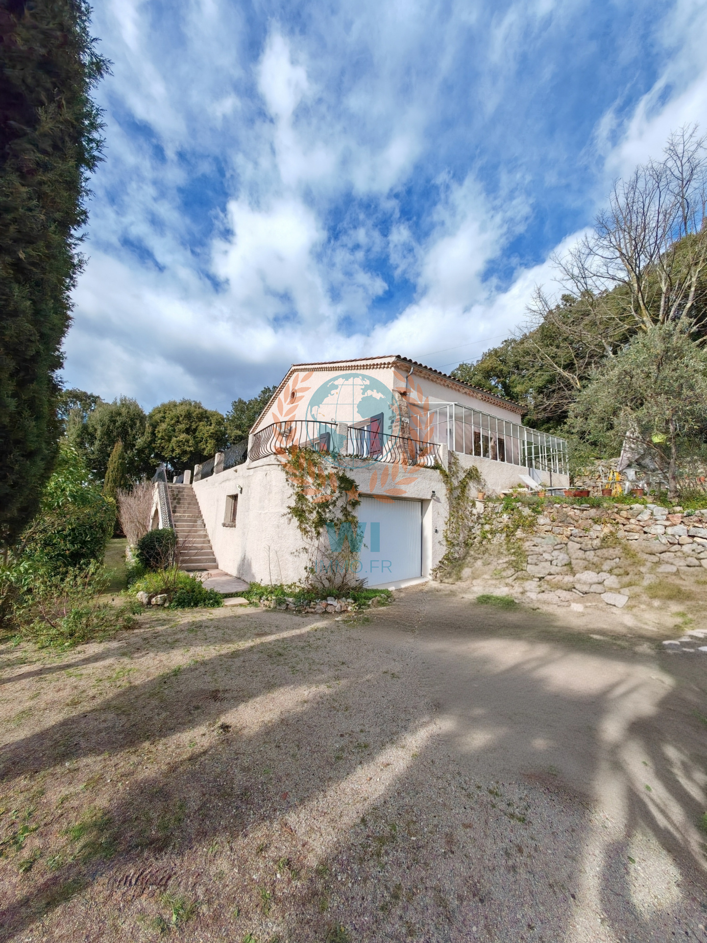 Trans-en-Provence (83720)Situation proche centre ville à pied pour cette maison des années 1960 rénovée de 155 m² hab et composée d'un séjour avec cheminée, une cuisine récente équipée donnant sur une véranda, une buanderie, 2 chambres au rez de chaussée, une salle d'eau, grande terrasse d'environ 70 m², à l'étage une chambre, deux dressings, grande pièce d'environ 30 m² donnant la possibilité de l'aménager en fonction des besoins (chambres avec salle d'eau, salle de musique ou cinéma, atelier d'artiste...) Un grand garage avec atelier, un jardin de 1985 m². Climatisation , double vitrage, exposition Sud Ouest.
