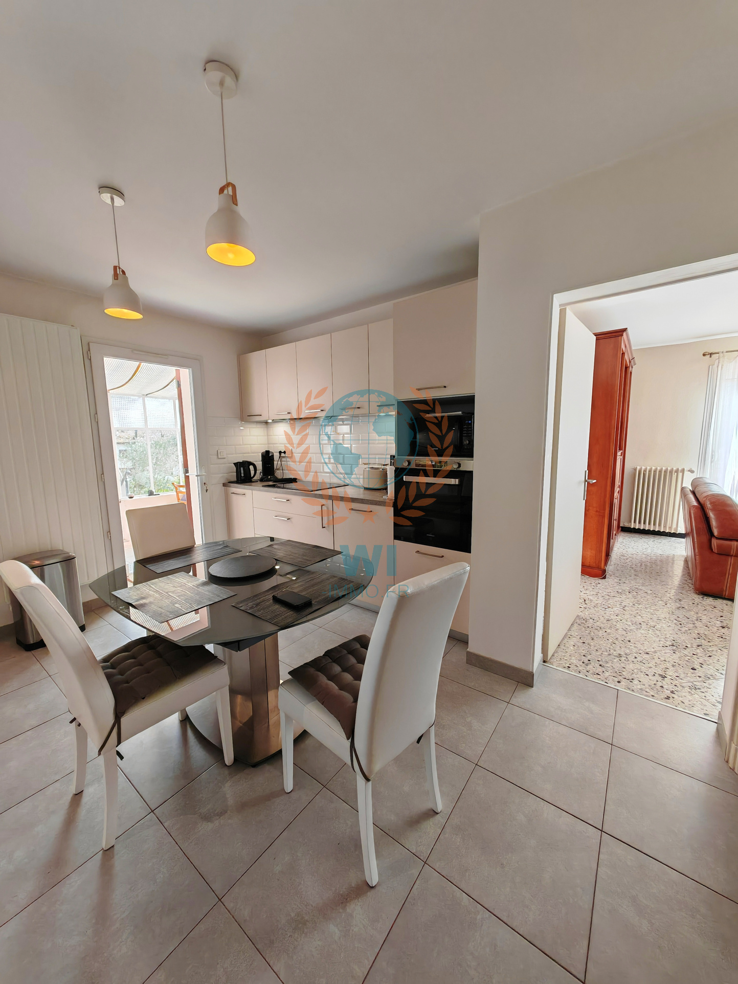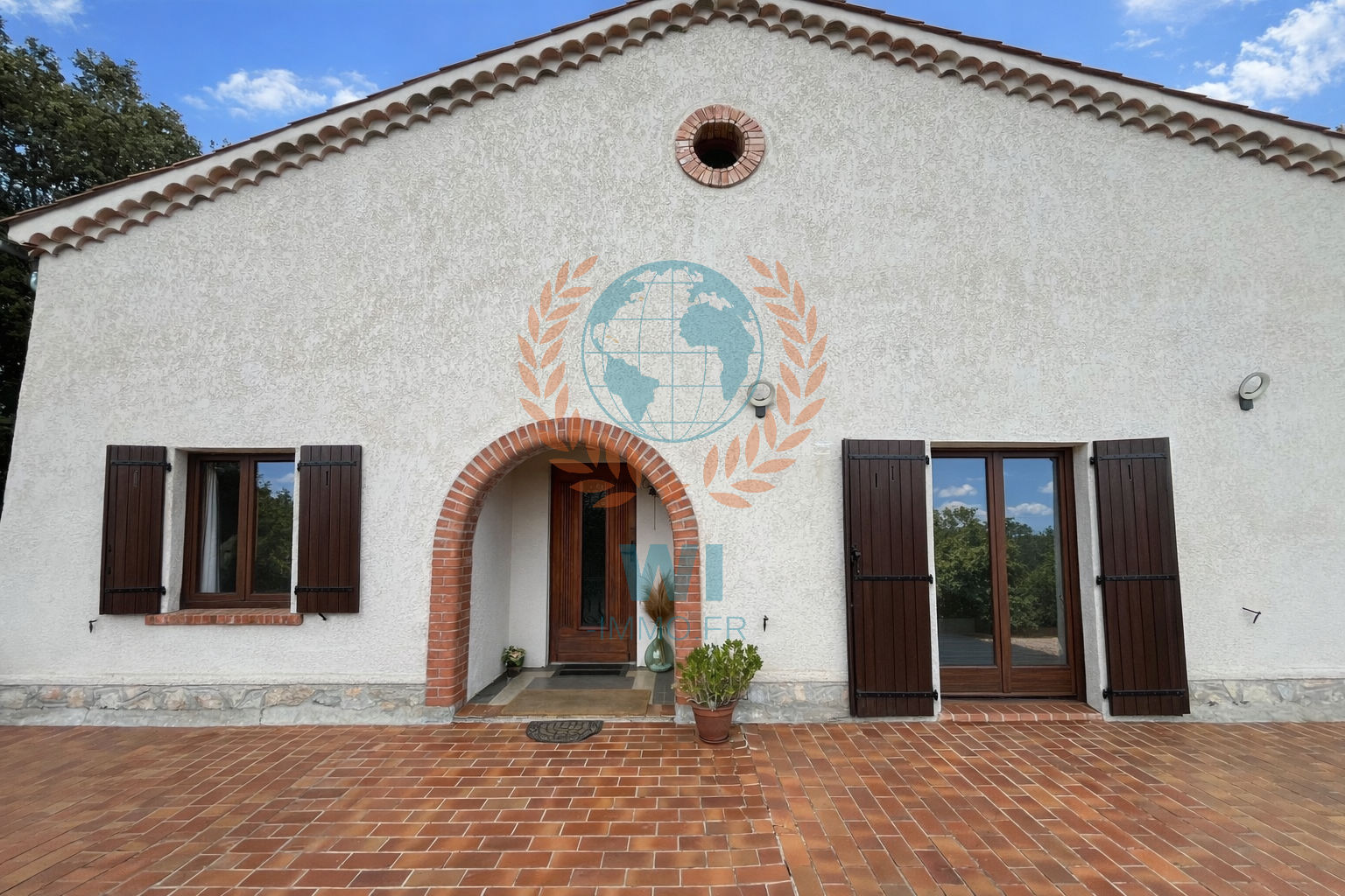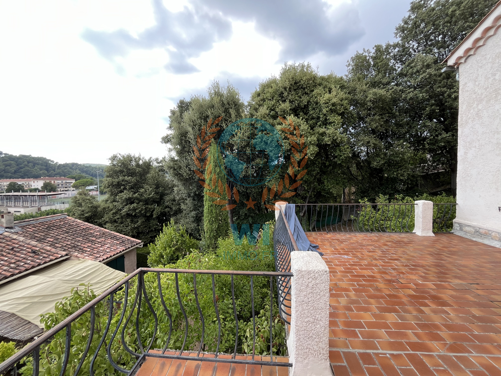 Trans-en-Provence (83720)Situation proche centre ville à pied pour cette maison des années 1960 rénovée de 155 m² hab et composée d'un séjour avec cheminée, une cuisine récente équipée donnant sur une véranda, une buanderie, 2 chambres au rez de chaussée, une salle d'eau, grande terrasse d'environ 70 m², à l'étage une chambre, deux dressings, grande pièce d'environ 30 m² donnant la possibilité de l'aménager en fonction des besoins (chambres avec salle d'eau, salle de musique ou cinéma, atelier d'artiste...) Un grand garage avec atelier, un jardin de 1985 m². Climatisation , double vitrage, exposition Sud Ouest.