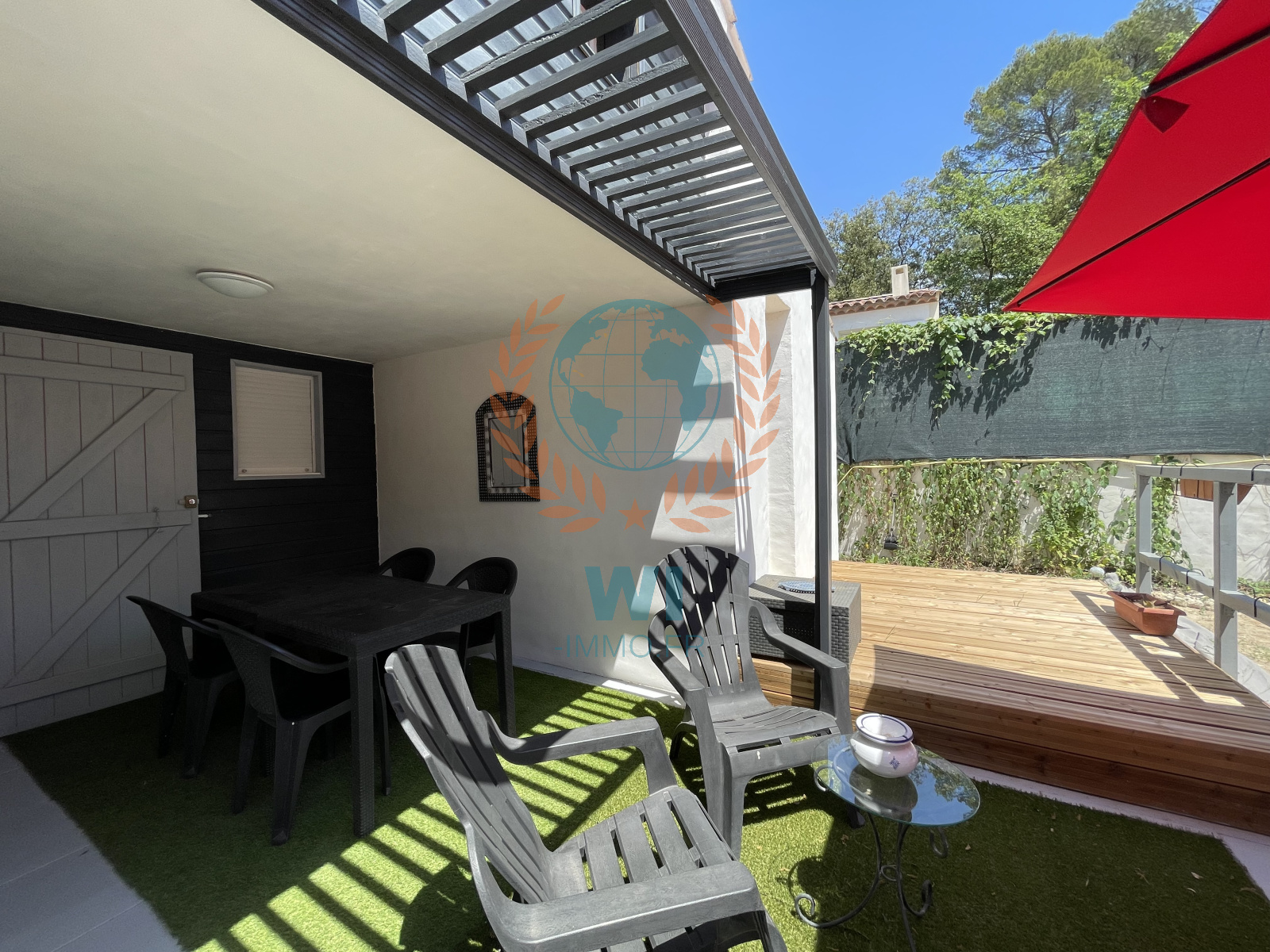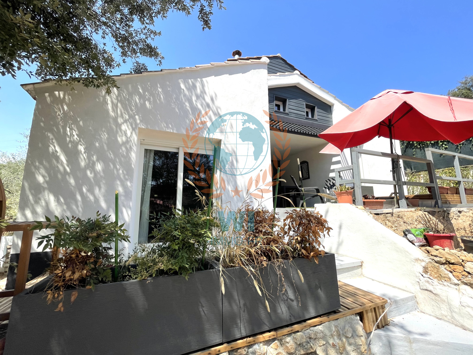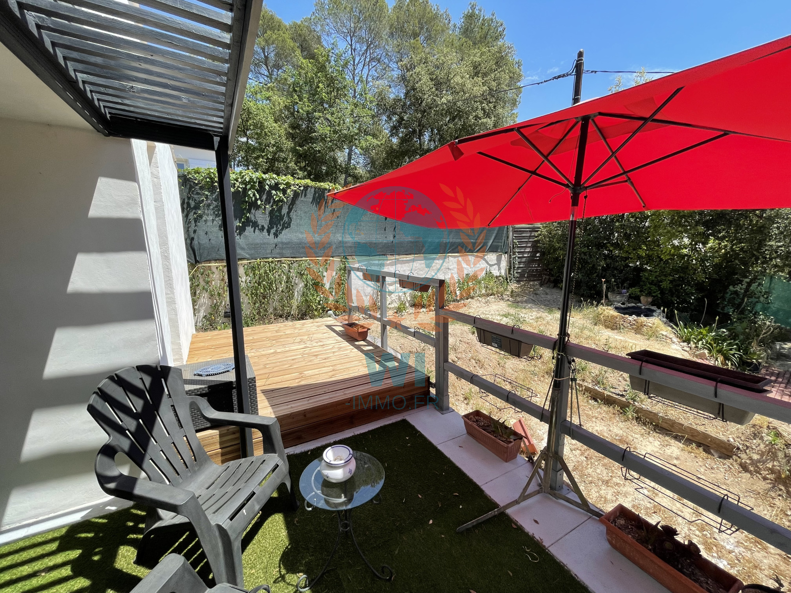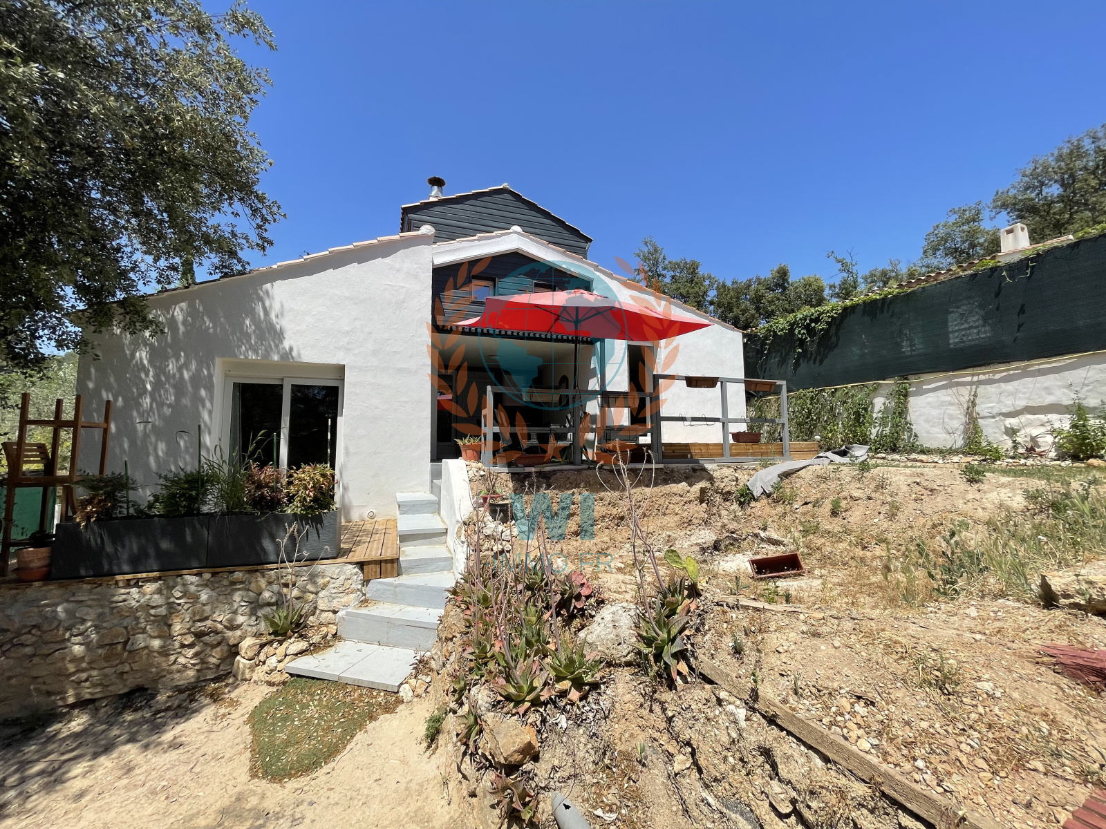 Trans-en-Provence (83720)Située dans un quartier calme et proche de toutes commodités, agréable petite villa de 2015 composée d'un salon séjour avec poêle à bois, une cuisine ouverte équipée, une chambre avec salle de bains et wc, à l'étage une chambre avec coin bureau et dressing. Patio et garage en partie aménagé, terrasses. Belles prestations, RT 2012, double vitrage, volets électriques, déco raffinée, un jardin clôturé exposé plein sud de 310 m². Quelques petits travaux extérieurs sont à prévoir. Piscinable, emplacement déjà prévu. Un petit bijou !!