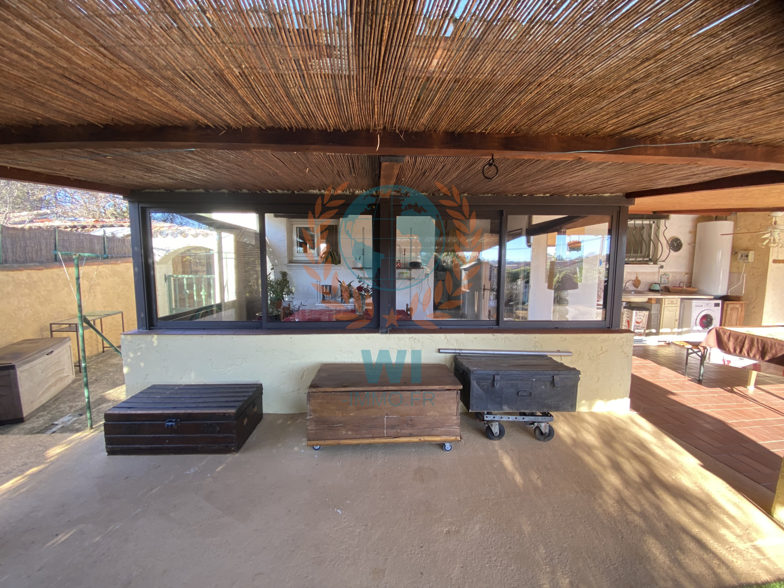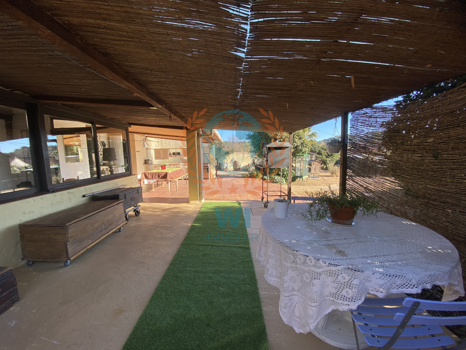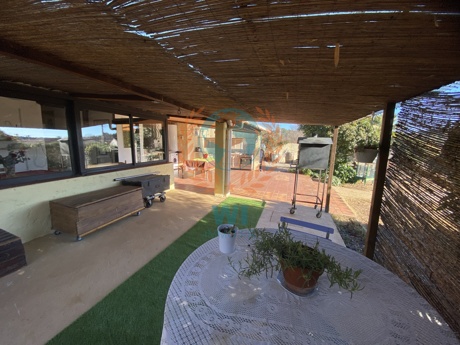 Trans-en-Provence (83720)Située dans un quartier calme, une maison individuelle de 82 m² construite en 1971 composée d'une entrée, espace de vie avec cheminée et cuisine ouverte, 2 chambres salle d'eau, bureau, Véranda. Un jardin de 1050m² avec piscine traditionnelle de 8x4 et une grande terrasse couverte avec cusine d'été. Chalet, fosse septique, exposition sud. Prévoir travaux et de remise au goût du jour.