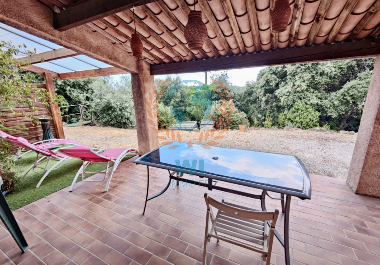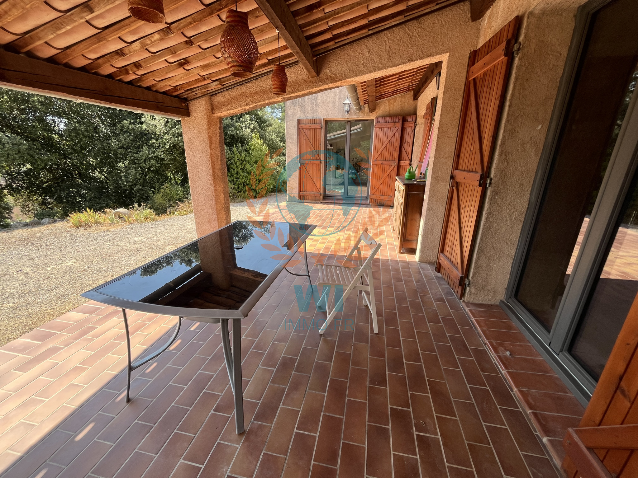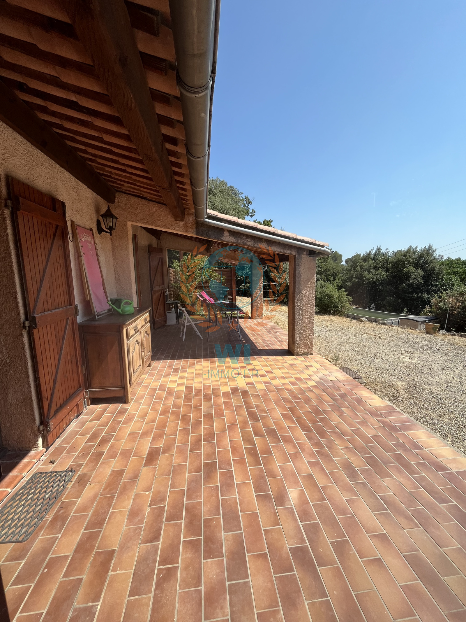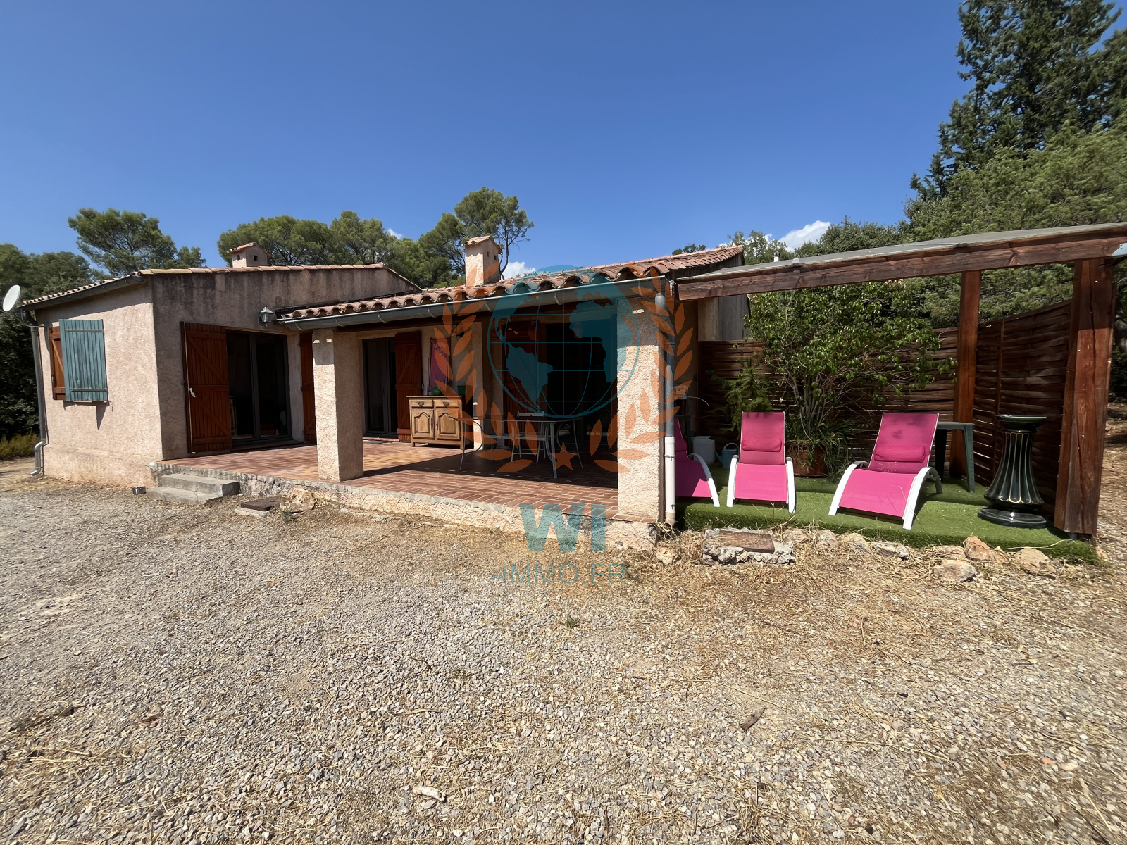 Trans-en-Provence (83720)Située dans un quartier calme et résidentiel de Trans-en-Provence, une villa individuellede plain-pied et composée d'un salon séjour avec poêle à bois, une cuisine indépendante équipée et aménagée ouvrant sur une large etrrasse couverte, 2 chambres avec une grande salle d'eau. Possibilité de faire une 3 ème chambre d’environ 15m2. Un garage de 22 m², une piscine hors-sol, (piscinable) sur un terrain de 1850 m² offrant une jolie vue. Belle exposition. Double vitrage récent, climatisation. Beau potentiel !!