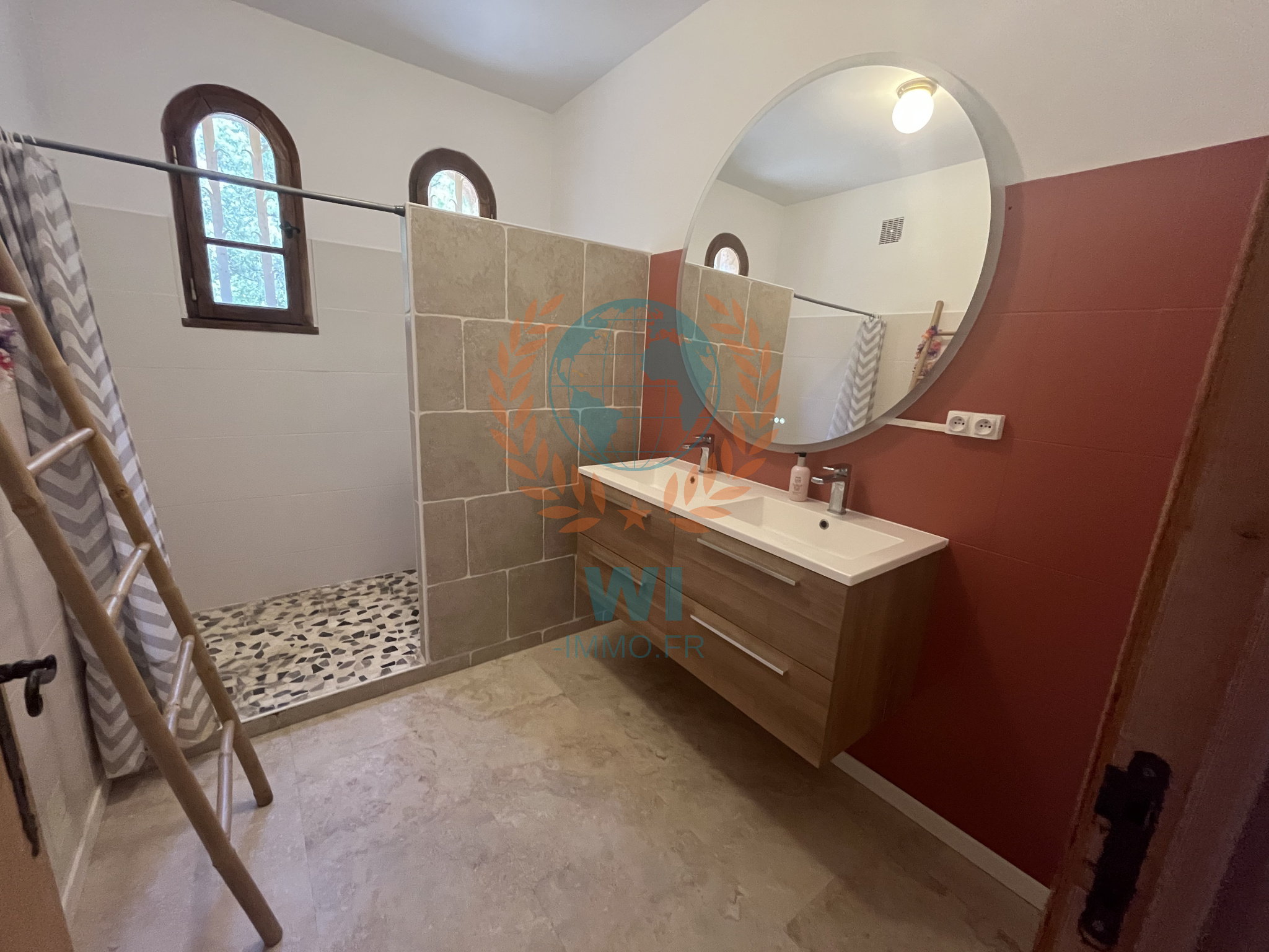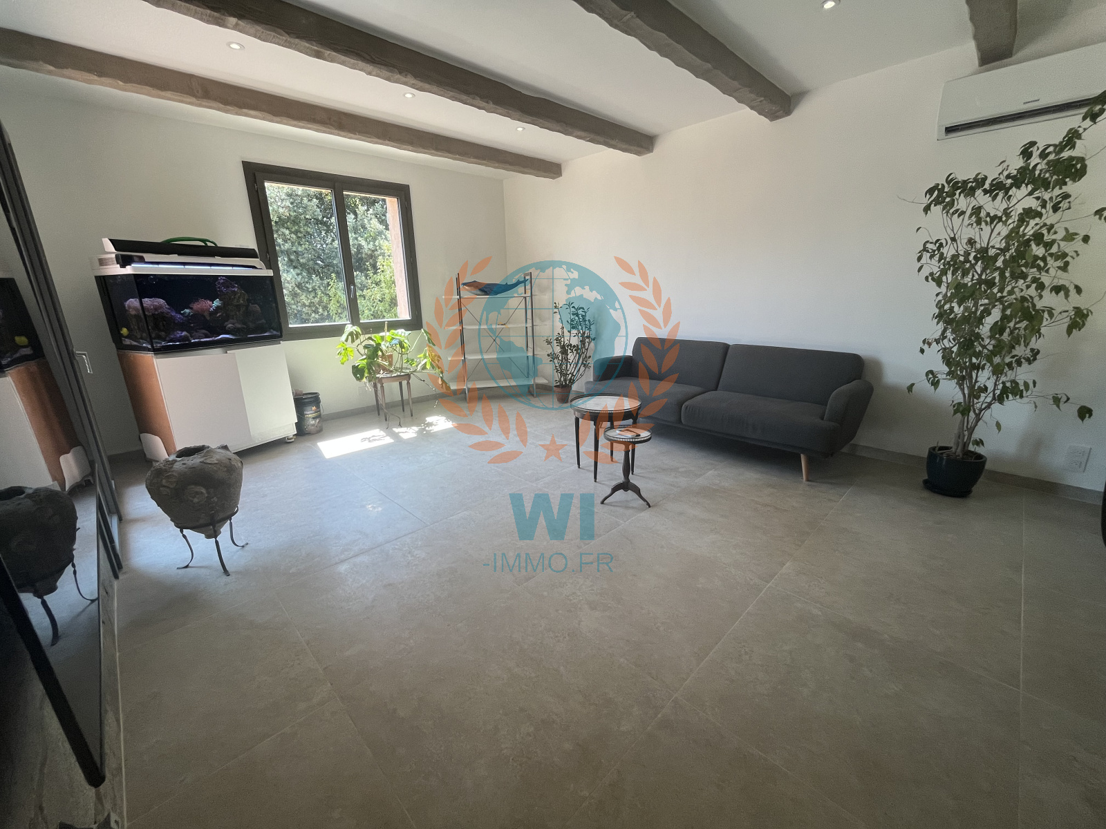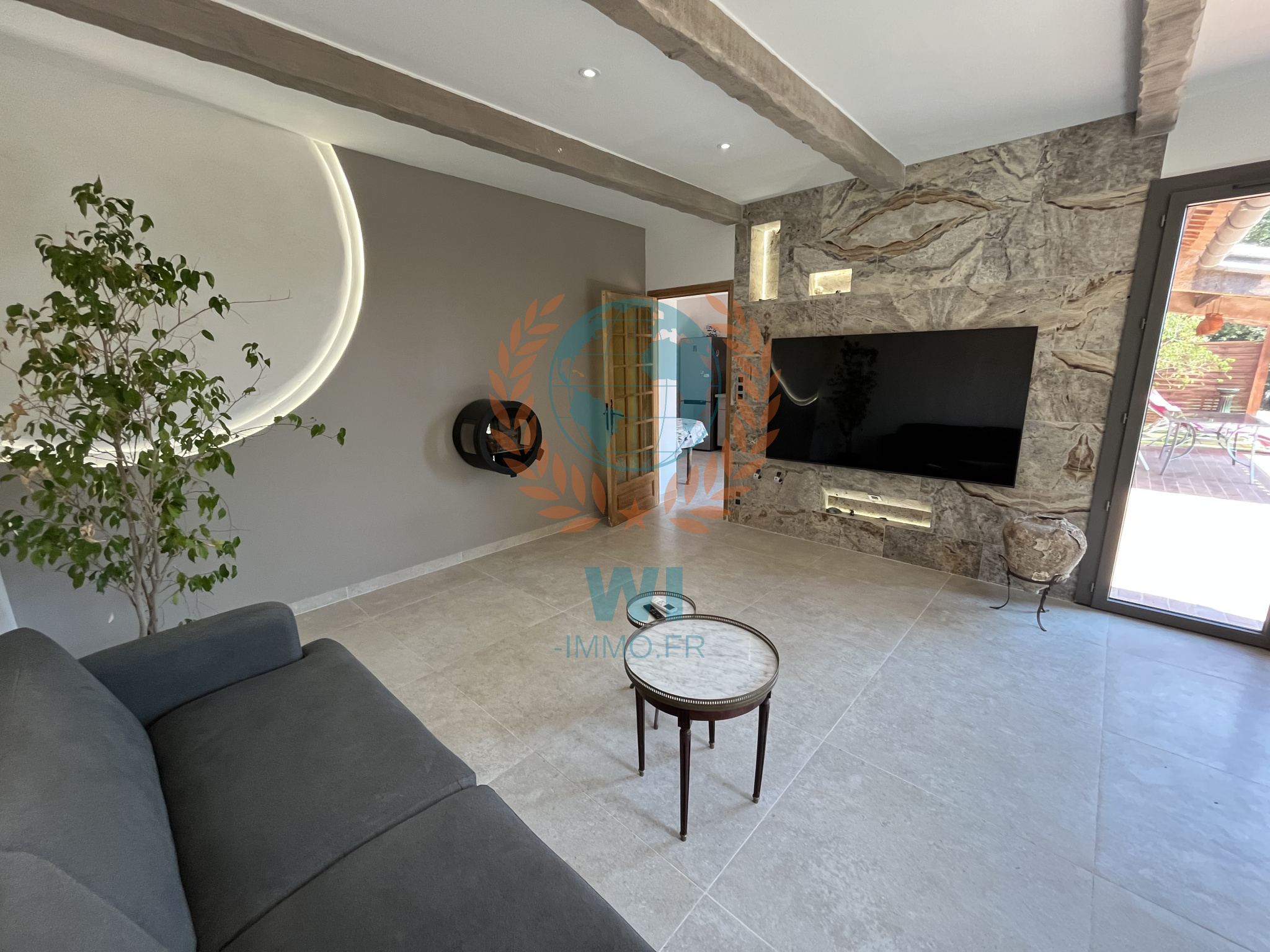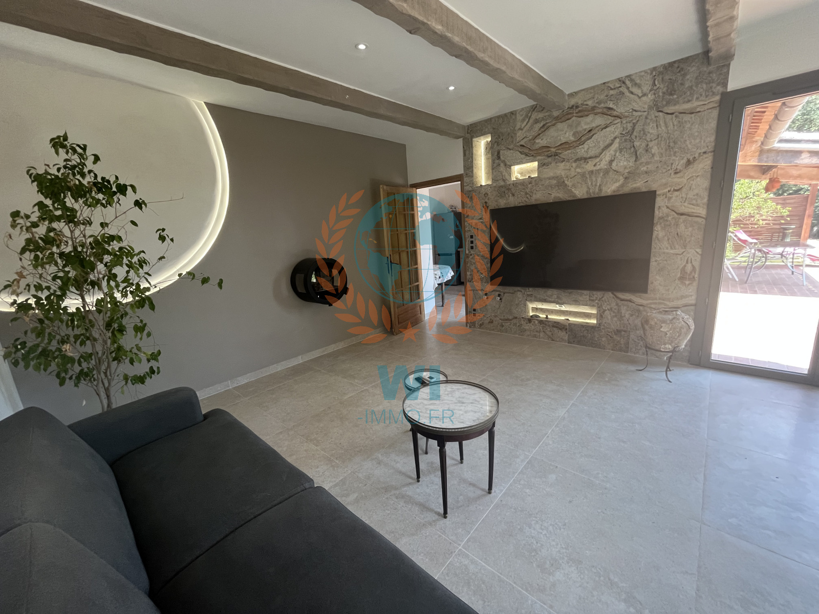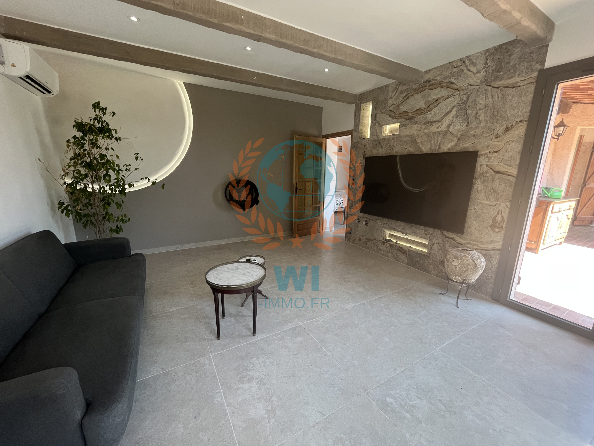 Trans-en-Provence (83720)Située dans un quartier calme et résidentiel de Trans-en-Provence, une villa individuellede plain-pied et composée d'un salon séjour avec poêle à bois, une cuisine indépendante équipée et aménagée ouvrant sur une large etrrasse couverte, 2 chambres avec une grande salle d'eau. Possibilité de faire une 3 ème chambre d’environ 15m2. Un garage de 22 m², une piscine hors-sol, (piscinable) sur un terrain de 1850 m² offrant une jolie vue. Belle exposition. Double vitrage récent, climatisation. Beau potentiel !!