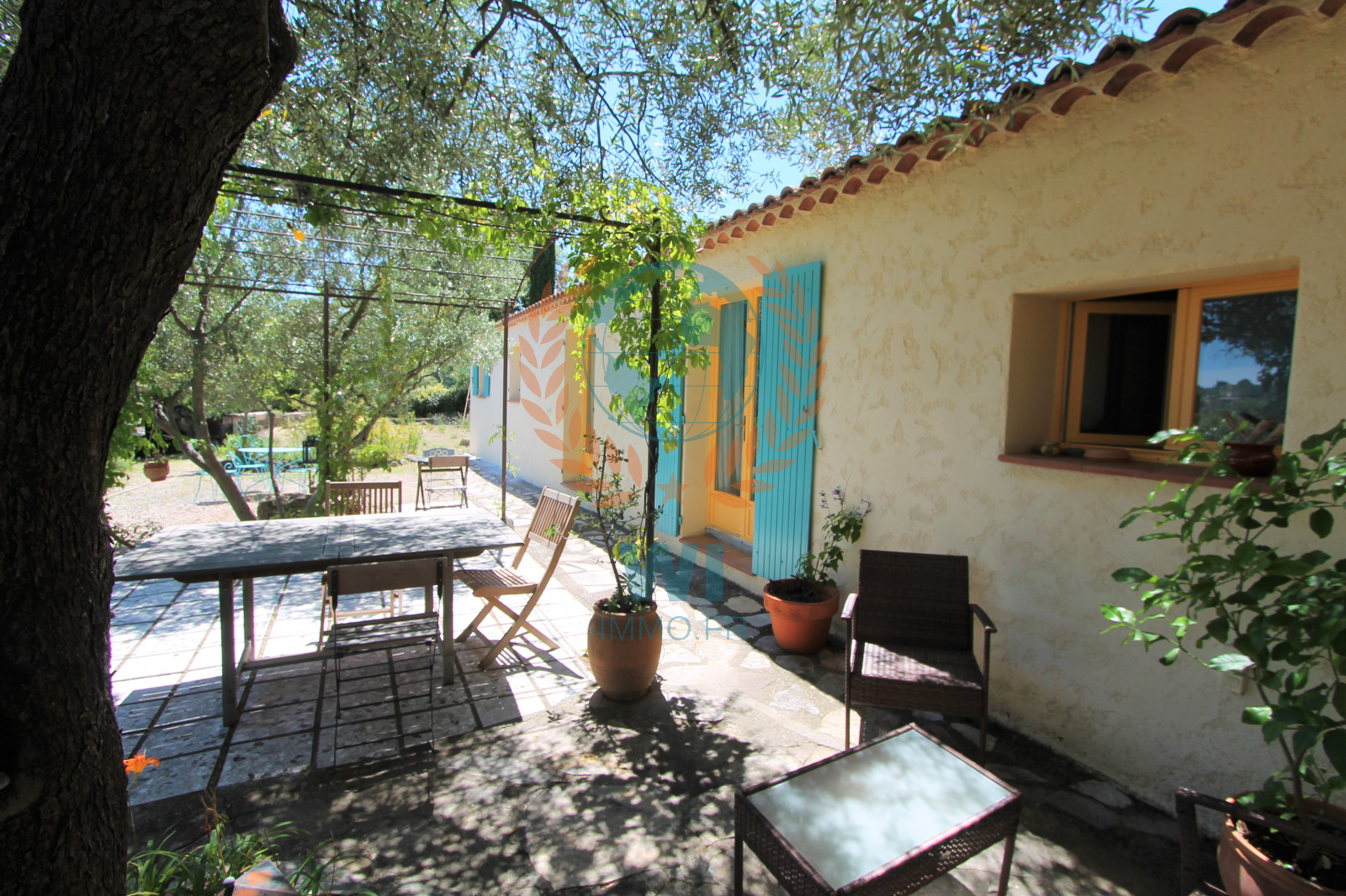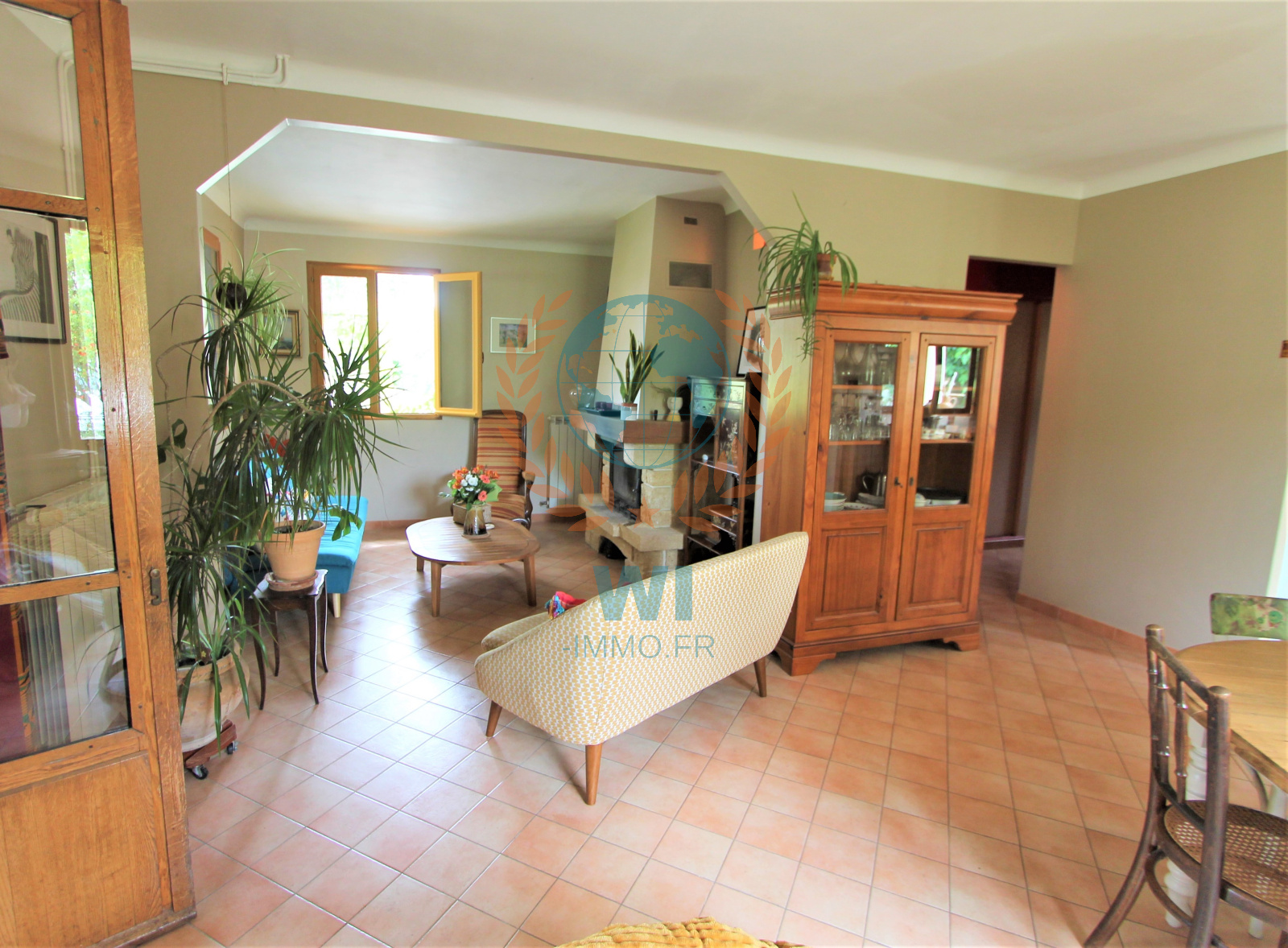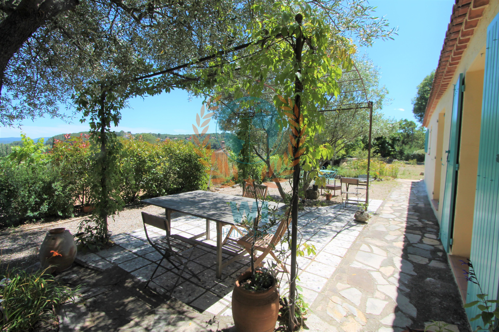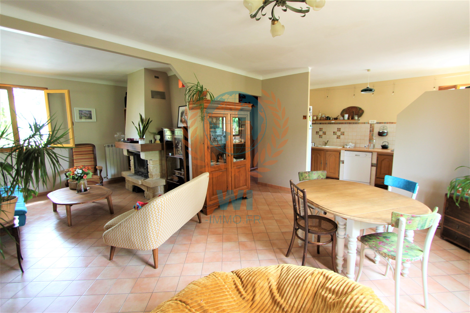 Trans-en-Provence (83720)Dans un secteur au calme à 5 min du centre ville, belle villa individuelle de 150 m² hab composée d'un salon séjour avec cheminée donnant sur une véranda lumineuse, une cuisine semi-ouverte équipée et aménagée, 3 chambres très spacieuses, une salle de bains, une salle d'eau. Un jardin entièrement clôturé avec une jolie vue sur les massifs, belle terrasse ombragée vous invitant à la farniente. Possibilité agrandissement et piscine. Très bon état général.