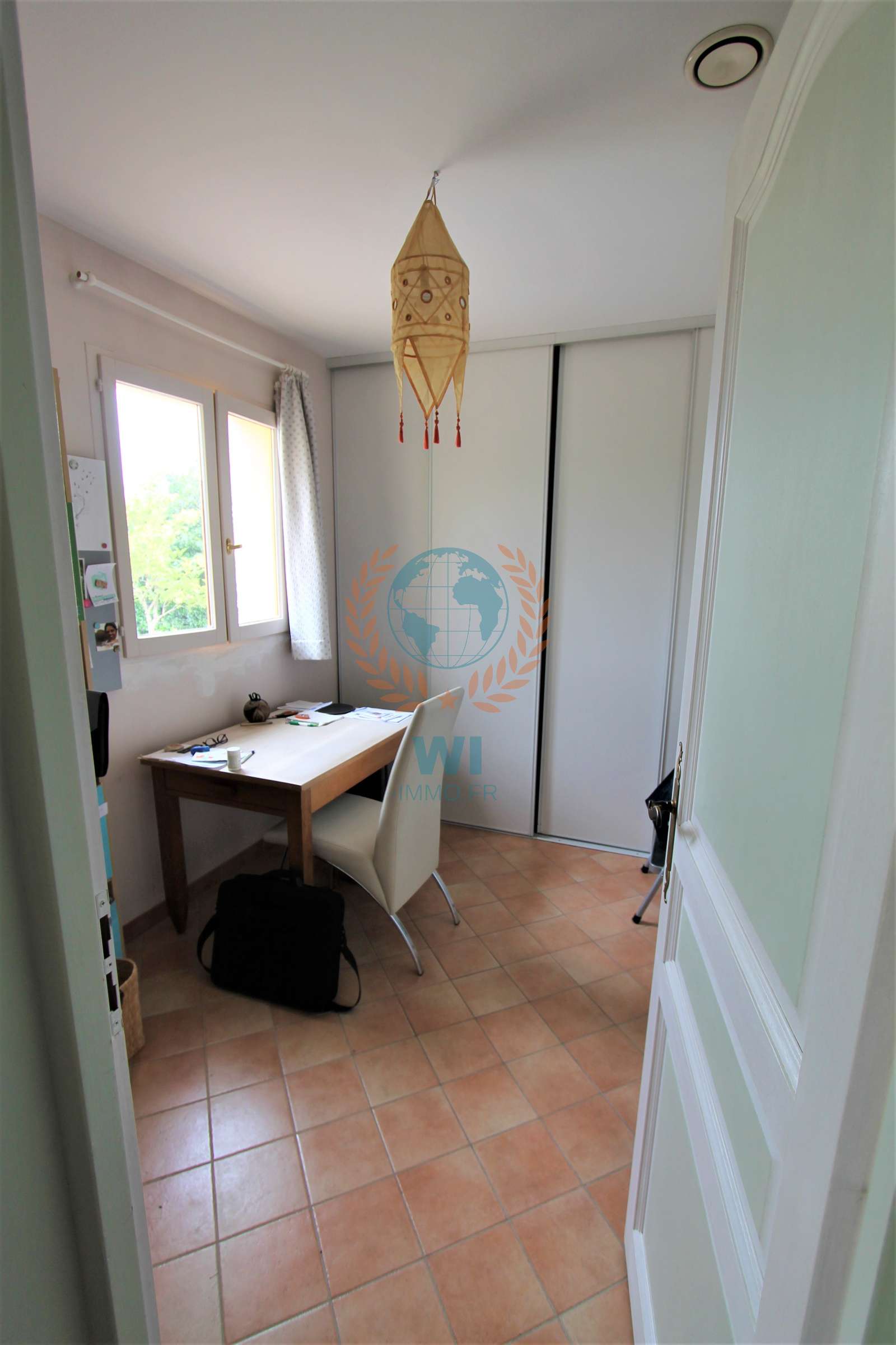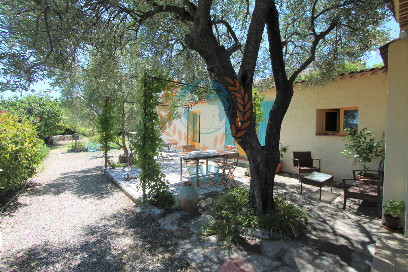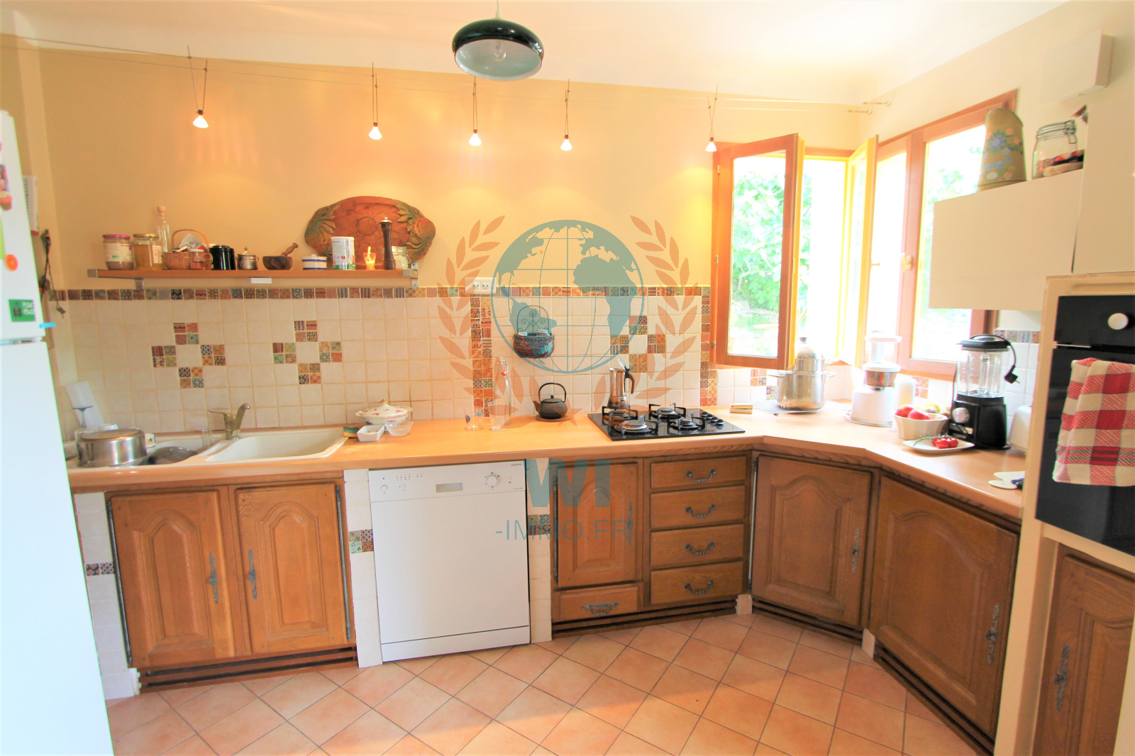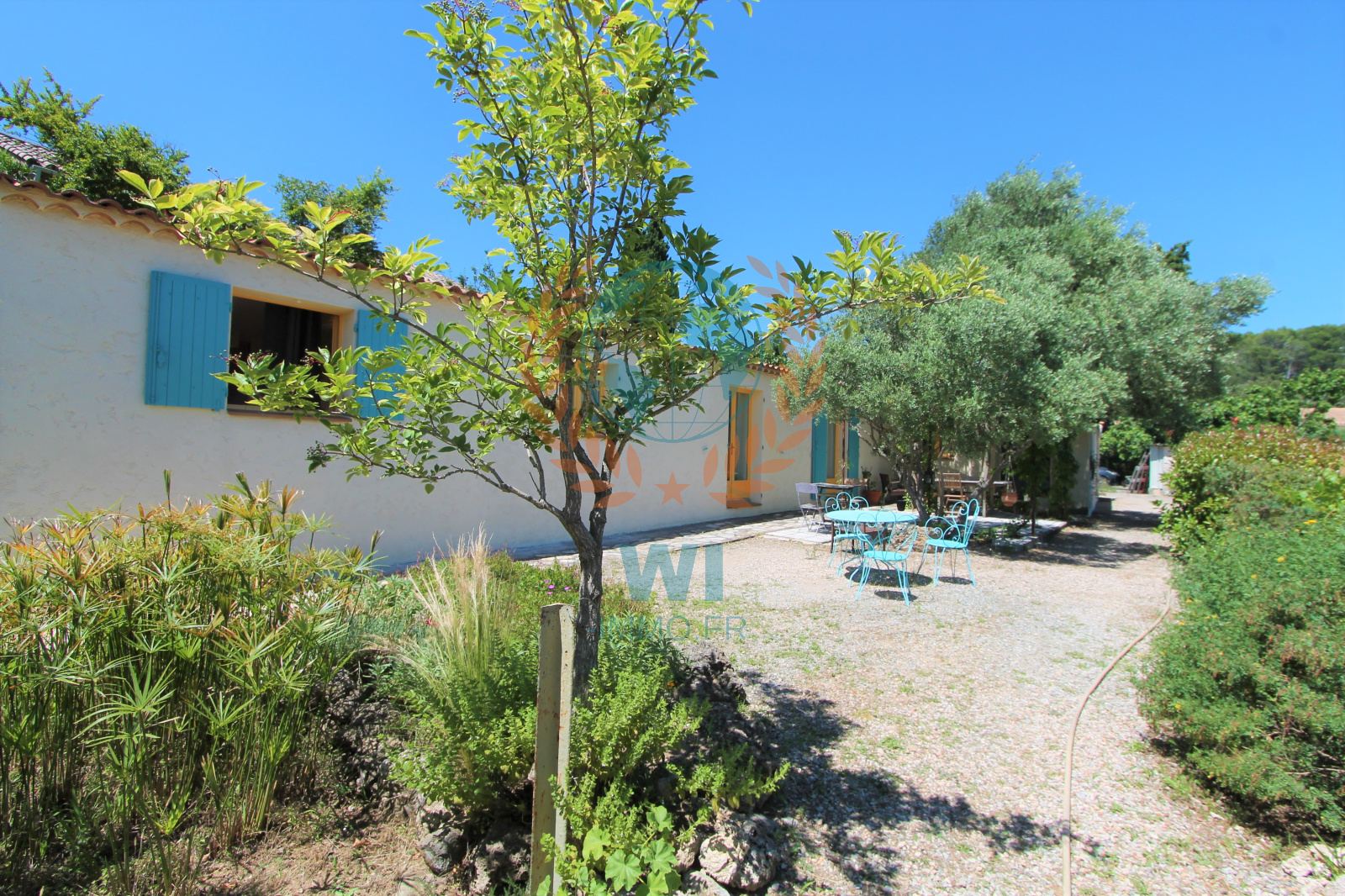 Trans-en-Provence (83720)Dans un secteur au calme à 5 min du centre ville, belle villa individuelle de 150 m² hab composée d'un salon séjour avec cheminée donnant sur une véranda lumineuse, une cuisine semi-ouverte équipée et aménagée, 3 chambres très spacieuses, une salle de bains, une salle d'eau. Un jardin entièrement clôturé avec une jolie vue sur les massifs, belle terrasse ombragée vous invitant à la farniente. Possibilité agrandissement et piscine. Très bon état général.