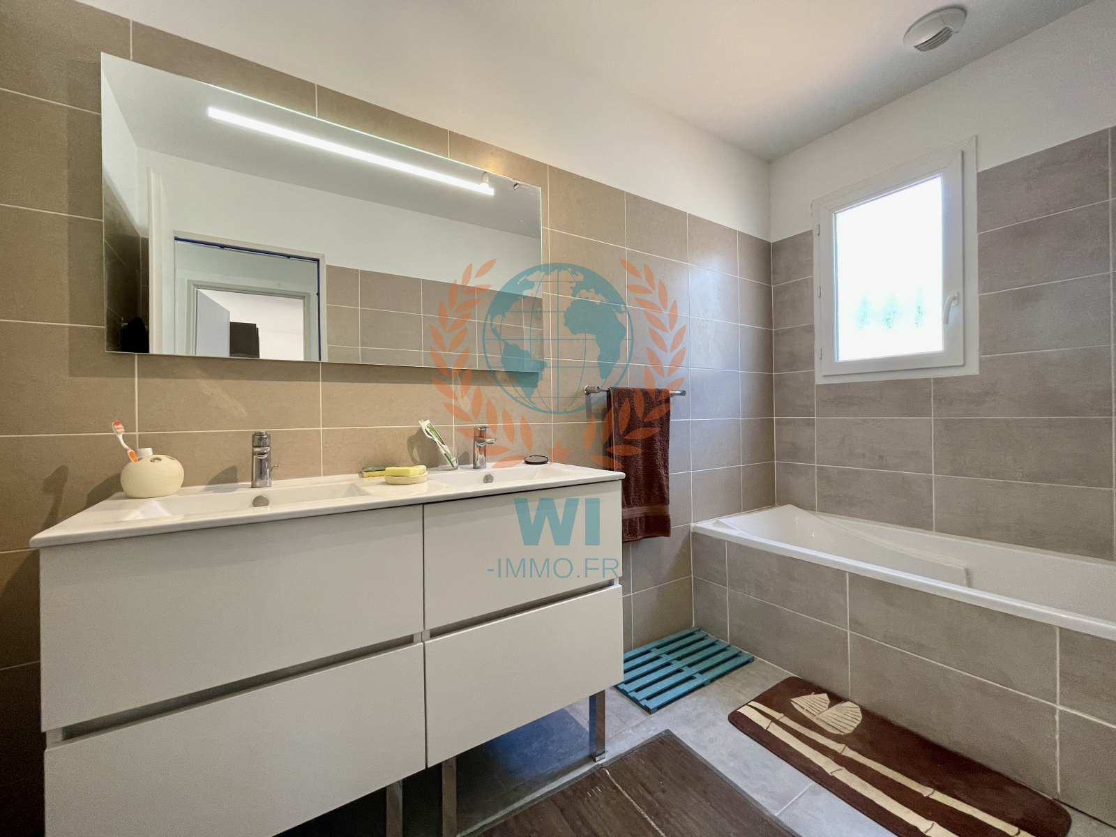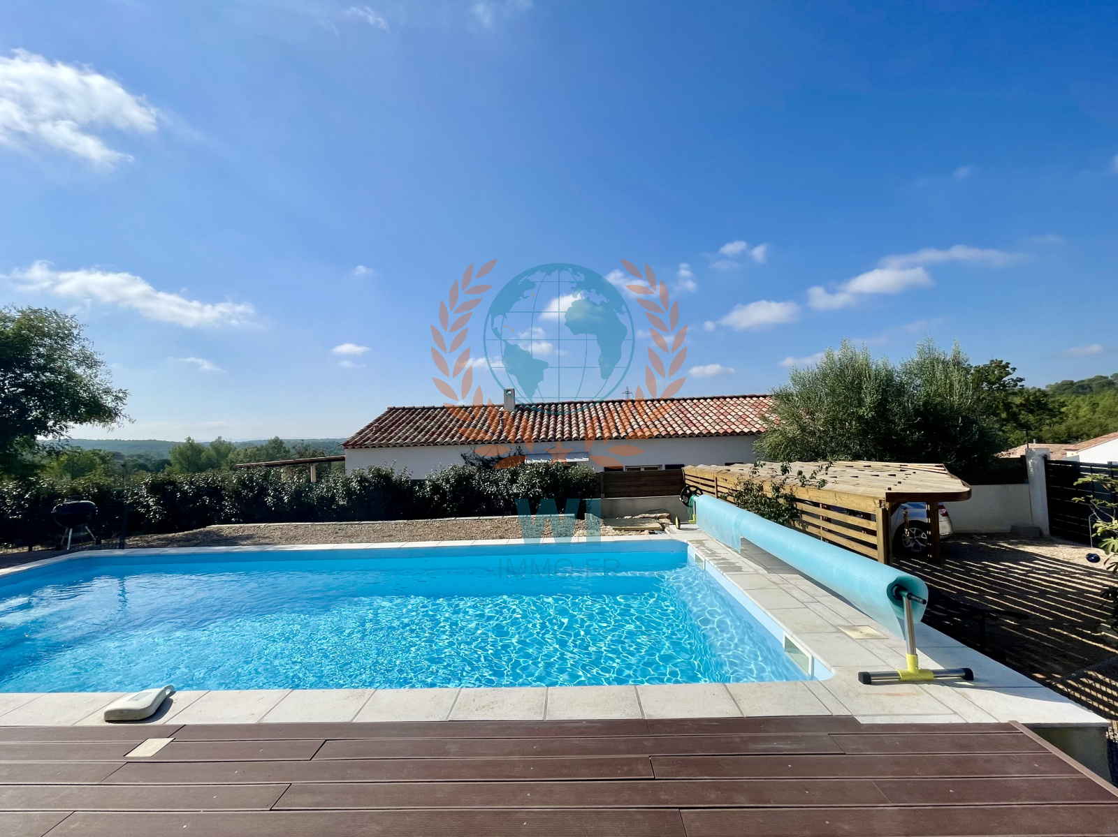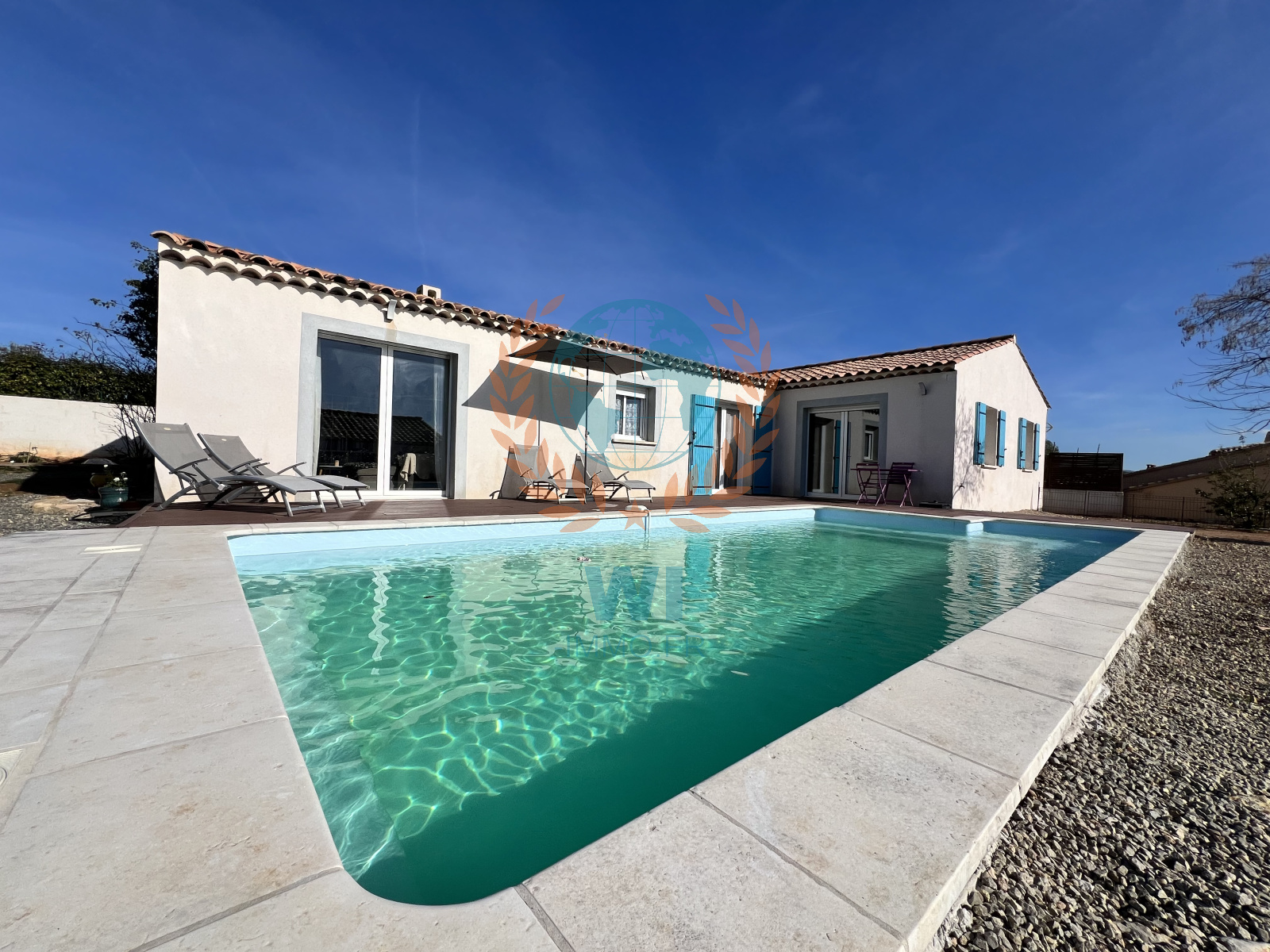 Trans-en-Provence (83720)A proximité du centre ville, de la gare TGV, l'autoroute et à 25 mins des Plages, située dans un quartier calme et recherché de Trans-en-Provence, une villa individuelle récente de 2019 de plain pied, composée de 155 m² hab comprenant 2 habitations : une pièce de vie avec une cuisine ouverte équipée, 3 chambres, une salle de bains, wc et l'autre partie : un salon séjour lumineux avec son espace cuisine ouverte équipée, 2 chambres, une salle d'eau, wc. Buanderie, carport, chalet, un jardin entièrement clôturé de 800 m² exposé sud-ouest, une piscine de 8.5 x 4 m avec son espace terrasse sans vis-à-vis, le tout encore sous garantie décennale. Cette propriété garantit confort et qualité avec ses finitions modernes et soignées, elle offre une flexibilité rare d'usage. Une opportunité unique pour y loger 2 familles ou garantir une rentabilité estivale... Garantie financière exigée.