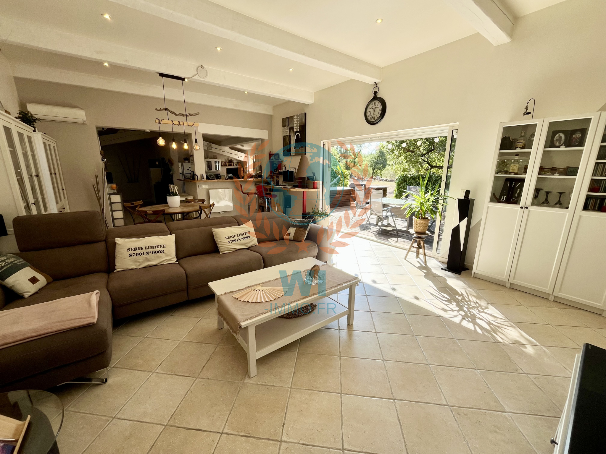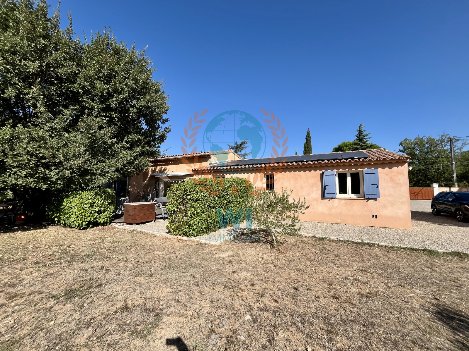 Les Arcs (83460)EXCLUSIVITE !! Dans un secteur prisé des Arcs, superbe villa individuelle de plain pied de 140 m² sur un jardin paysagé de 5000 m² avec une large piscine traditionnelle de 10 x 5 m. Très bel espace de vie lumineux avec belle hauteur sous plafond, baie en galandage ouvrant sur une spacieuse terrasse ombragée exposée plein sud vous invitant à la farniente, grande cuisine ouverte équipée, 2 grandes chambres, salle de bains, une suite suite parentale avec salle d'eau, panneaux solaires, climatisation, store, poêle à bois, carport, portail électrique.... Prestations et décoration soignées. A découvrir sans tarder !!! Forage et eau collectif, garage isolé de 32m2