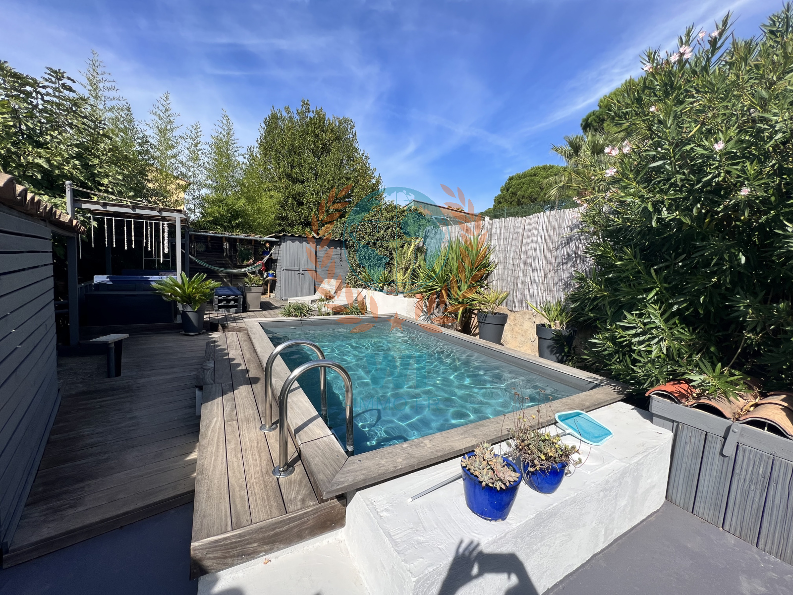 Les Arcs (83460)EXCLUSIVITE - Située dans un quartier calme et recherché des Arcs-sur-Argens, une villa individuelle de plain pied proche de toutes commodités à pieds (Gare TGV, commerces, écoles, centre ville...) et composée d'une grande pièce de vie lumineuse de 40 m², une cuisine ouverte équipée, 3 chambres, 2 salles d'eau, wc. Une chambre indépendante aménagée, une piscine semi-enterrée, nombreuses terrasses ombragées, atelier, chalet, portail électrique, climatisation gainable. Aucun vis-à-vis, aucune nuisance. Beau jardin paysagé de 550 m². Un petit bijou !!