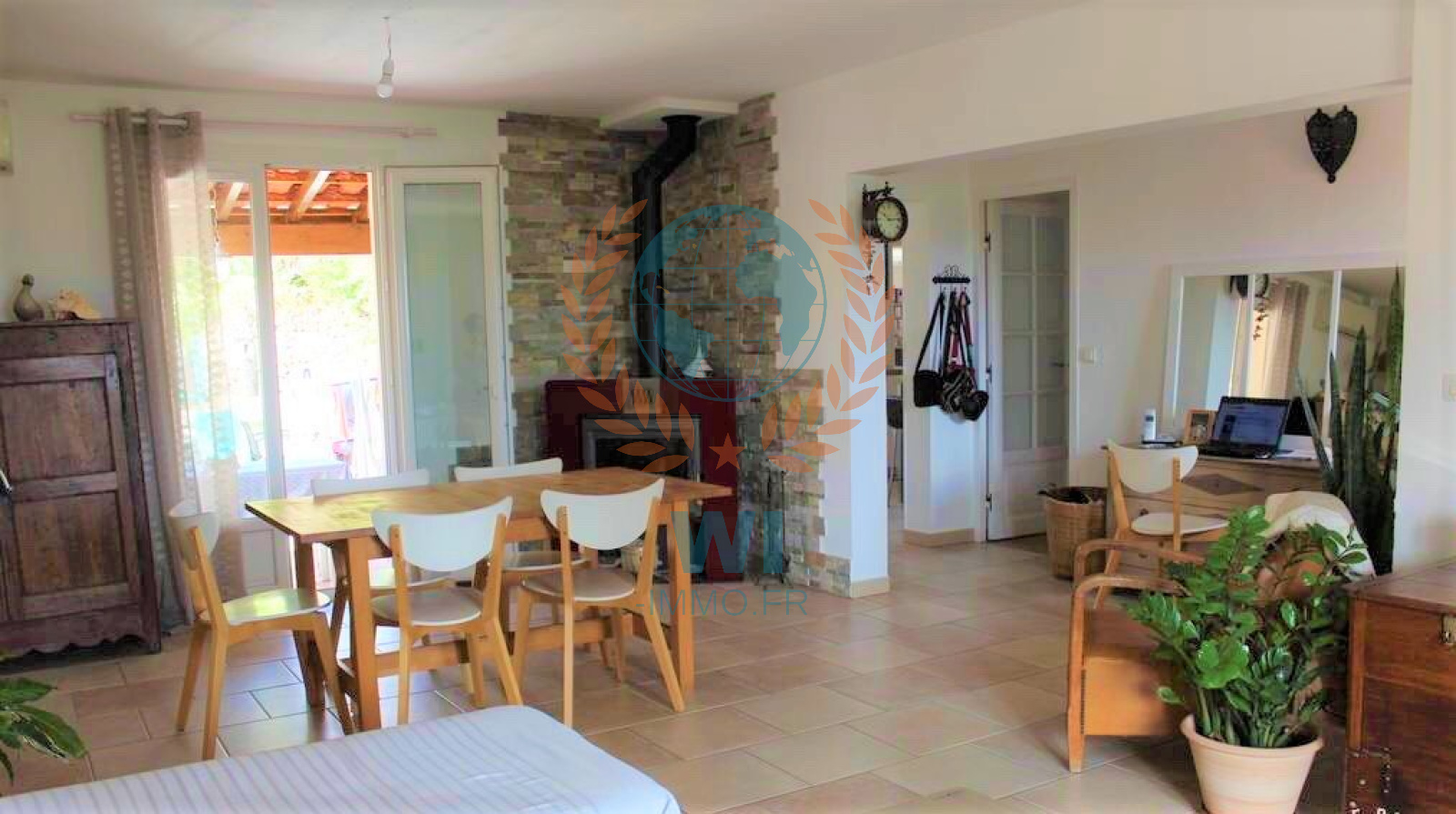 Dans une impasse, belle maison de plain pied a la décoration soignée, séjour avec poêle à bois, cuisine équipée et aménagée, 3 chambre, 2 salle d'eau, garage, nombreux rangement. un petit bijou !