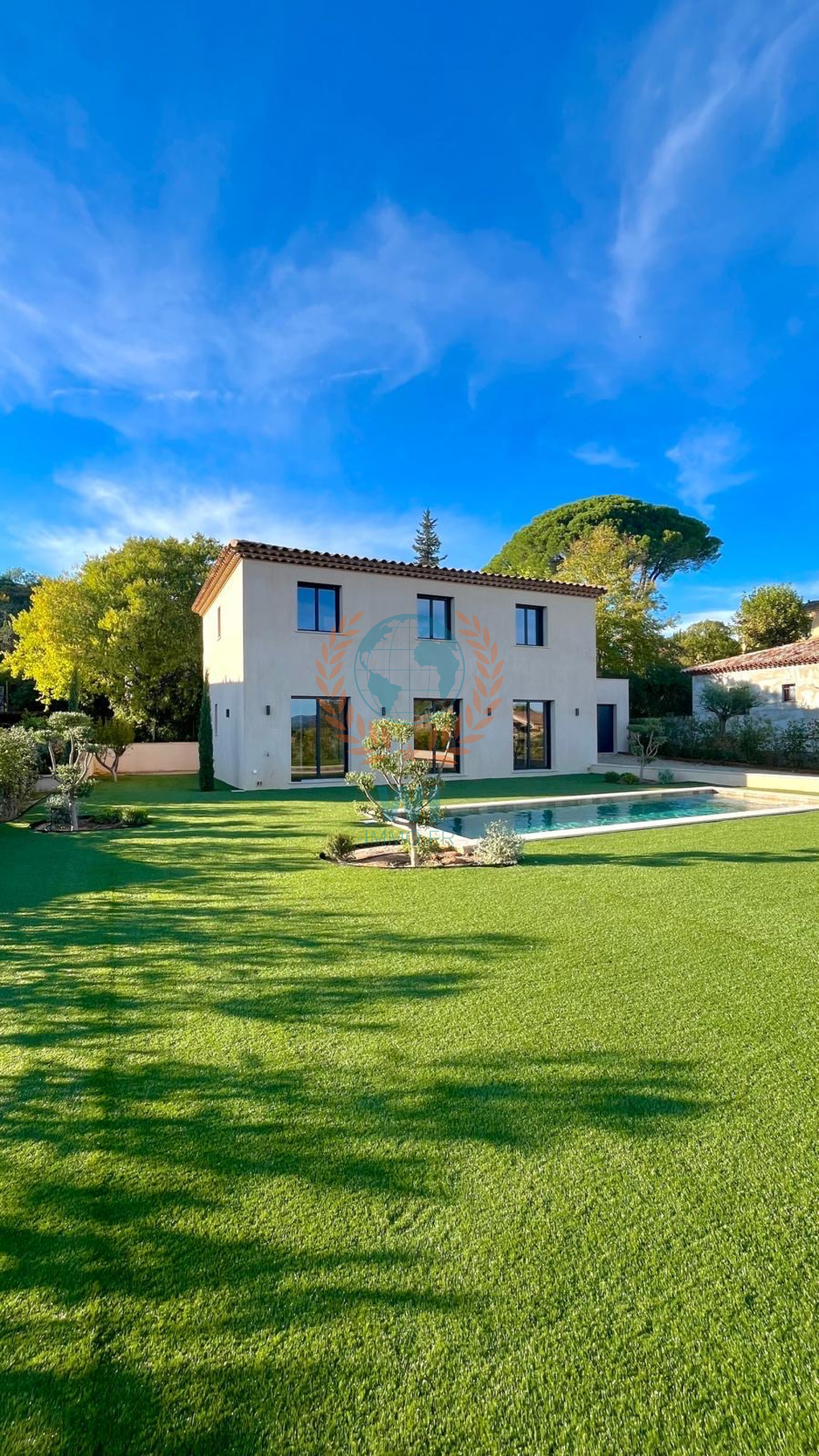 Les Arcs (83460)Située dans un quartier agréable au calme et résidentiel, cette bastide comtenporaine neuve vous séduira par ses volumes, ses prestations haut de gamme et sa vue dominante sur les massifs. Composée d'un spacieux salon séjour avec une cuisine américaine, une suite parentale avec salle d'eau privative, à l'étage : 3 chambres avec chacune sa salle de douche. Un jardin exposé plein sud arboré de 1 100 m² avec une piscine traditionnelle de 9 x 3 m. Double garage, garantie décennale, RT 2020. Climatisation , domotique, thermostat connecté, digicode, interphone, vidéophone, portail auto, éclairage extérieur, terrain de boules. A découvrir au plus vite !!! FNR