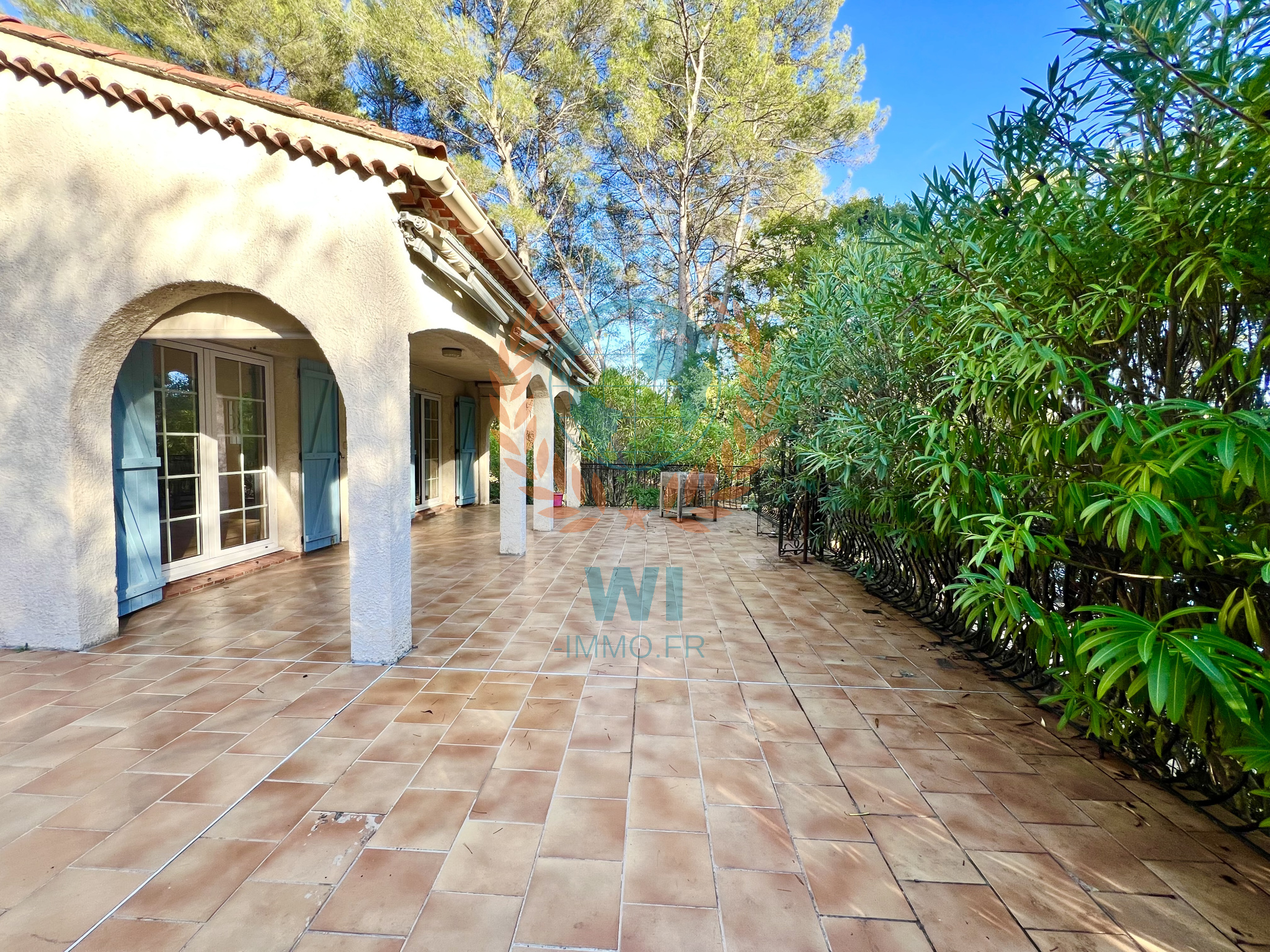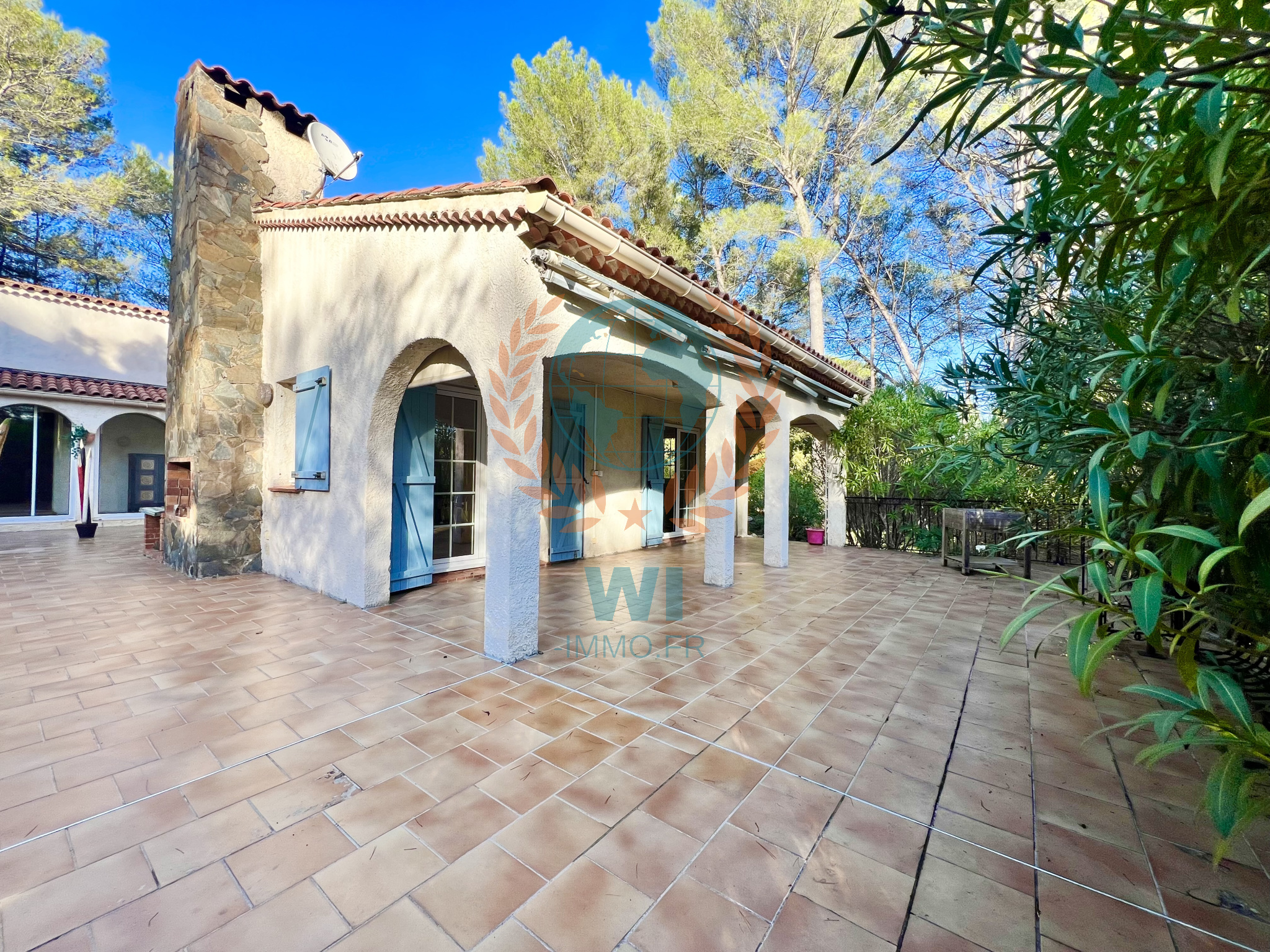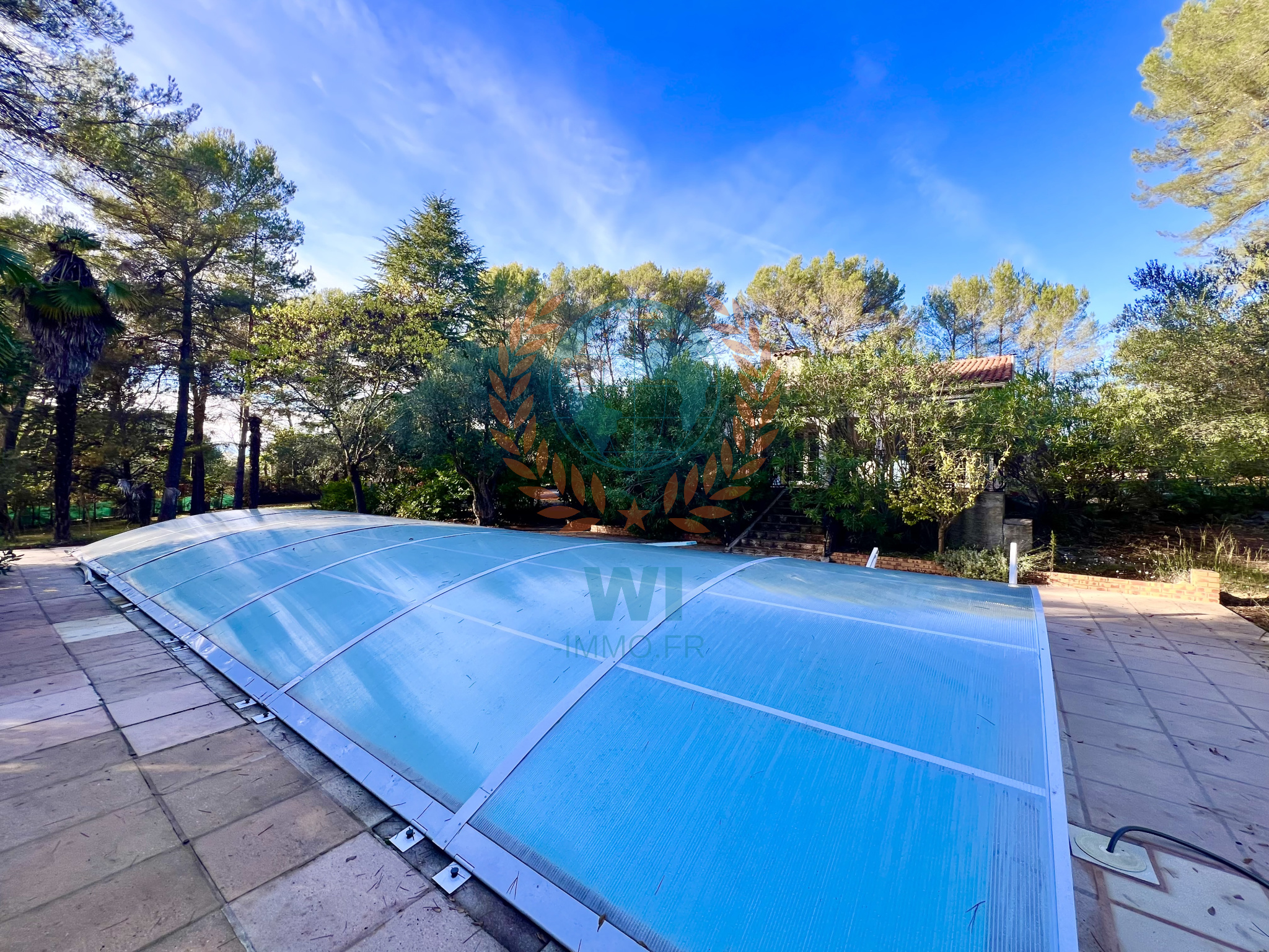 Les Arcs (83460)Située dans un quartier résidentiel des Arcs-sur-Argens, venez découvrir cette villa individuelle de plain pied composée d'un salon séjour avec cheminée et poêle à granules ouvrant sur une large terrasse exposée plein sud, une cuisine indépendante ouvrant également sur une autre terrasse ombragée, 3 chambres avec 2 salles de bains et une salle d'eau. Un jardin de 5867 m² arboré entièrement clôturé avec sa piscine de 14 x 4.5 m, son espace pool-house avec son coin barbecue. Une dépendance très originale de forme octogonale de 54 m² avec sa chambre indépendante, sa salle de bains et son coin kitchenette, idéale salle de joga ou T2 pour recevoir famille et amis !! Un garage de 18 m², un bureau indépendant. Forage, adoucisseur, carport de 3 voitures. L'environnement agréable et son fort potentiel vous séduiront, idéal si vous avez un projet pour chambre d'hôtes, à découvrir sans tarder !!