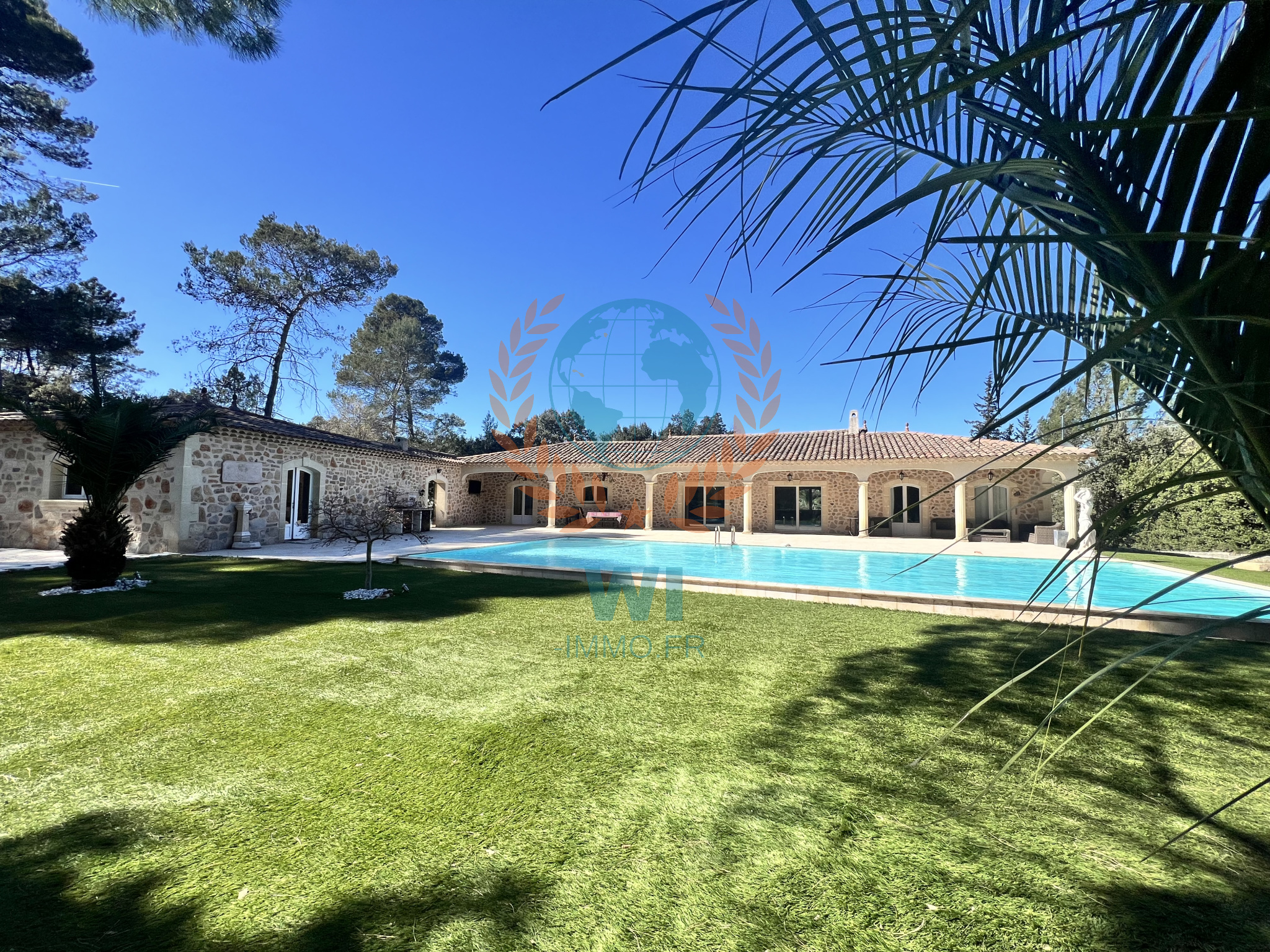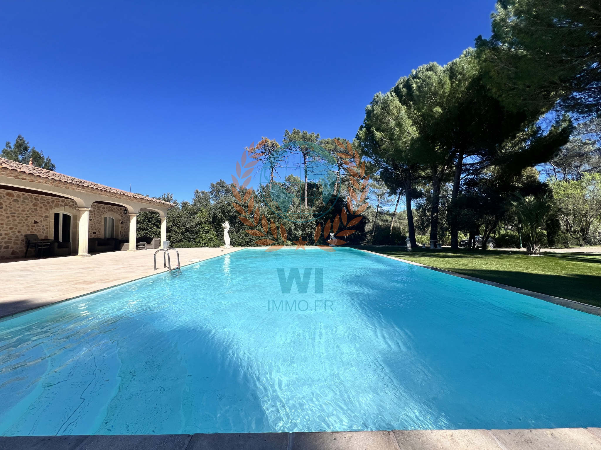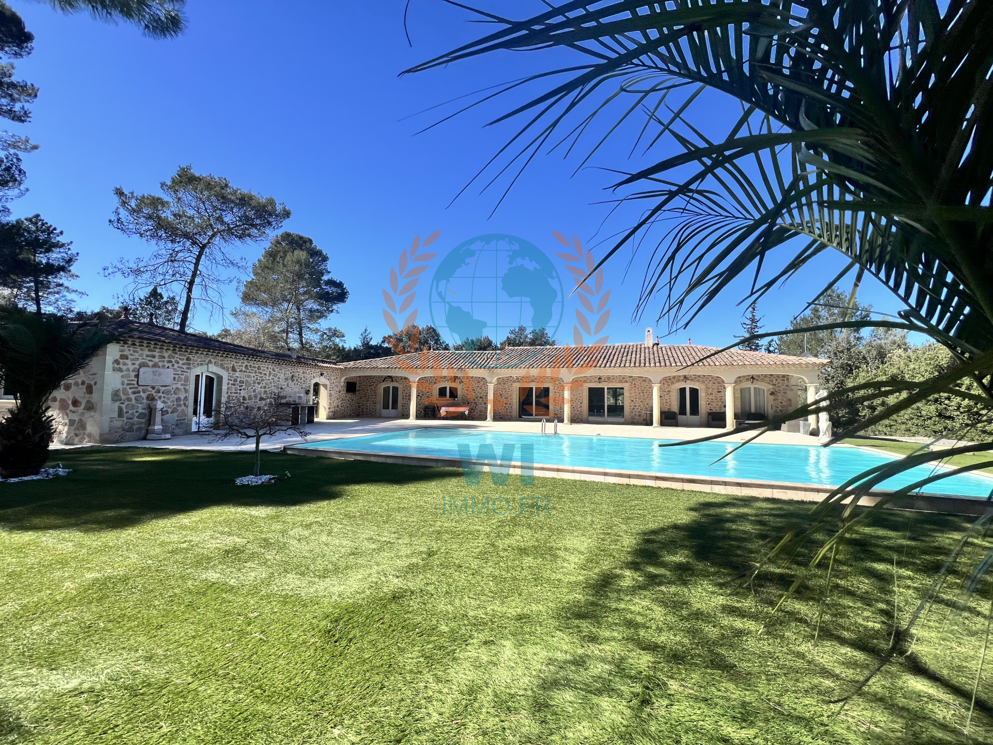 Les Arcs (83460)Nichée dans un cadre exceptionnel, résidentiel et au calme, vous serez séduits par cette propriété unique et atypique en Pierres de 177 m² hab Composée d'une grande pièce de vie de 55 m² avec ses plafonds à la française et son coin cheminée, une cuisine provençale indépendante équipée, une suite parentale avec balnéo, douche et dressing, 2 chambres avec salle d'eau. Un studio indépendant de 33 m² idéal pour recevoir famille et amis ou un rendement locatif saisonnier. Une large terrasse couverte donnant sur une magnifique piscine à débordement de 15 x 7 m, un superbe jardin paysagé de 4000 m² sans vis-à-vis. Le must de cette demeure : un sous-sol de 170 m² facilement aménageable en salle de sport, salle de jeux ou salle de cinéma... Climatisation, cheminée, adoucisseur, double portail électrique, arrosage auto, éclairage auto.... Etat impeccable, aucun travaux à prévoir !!