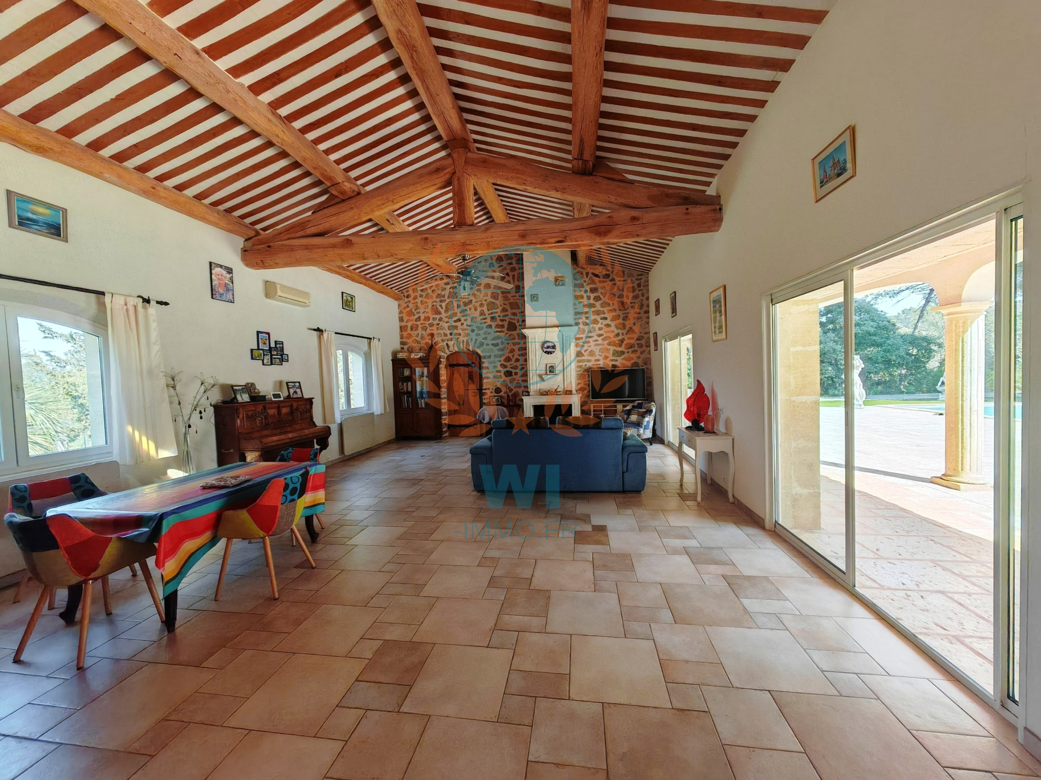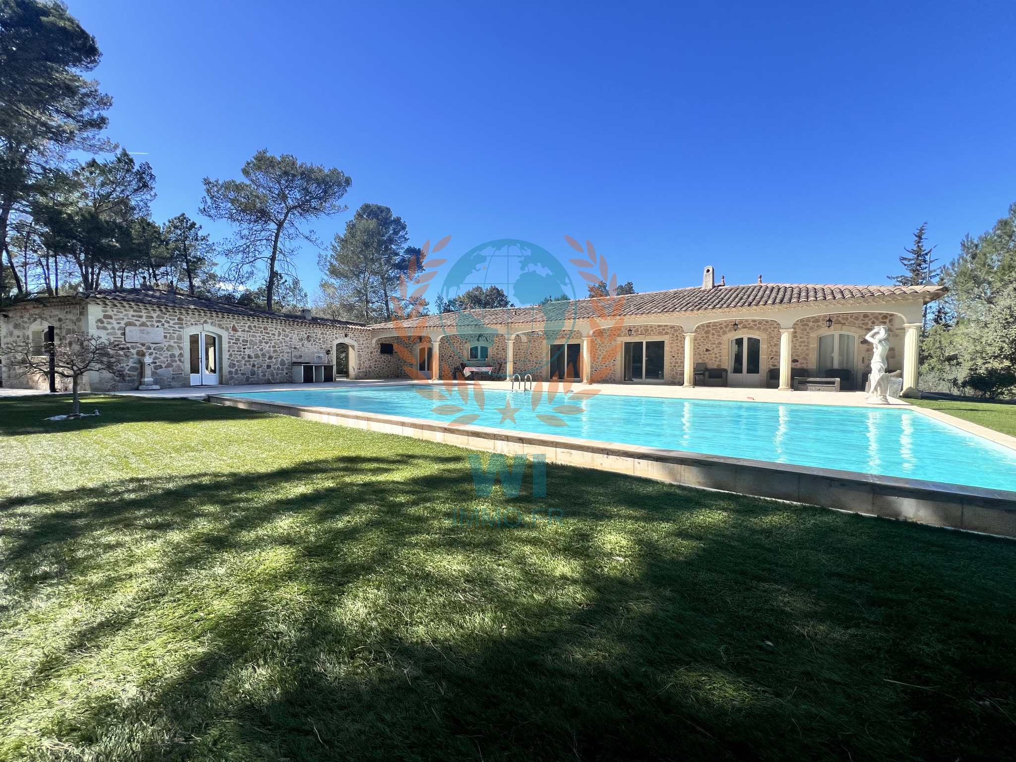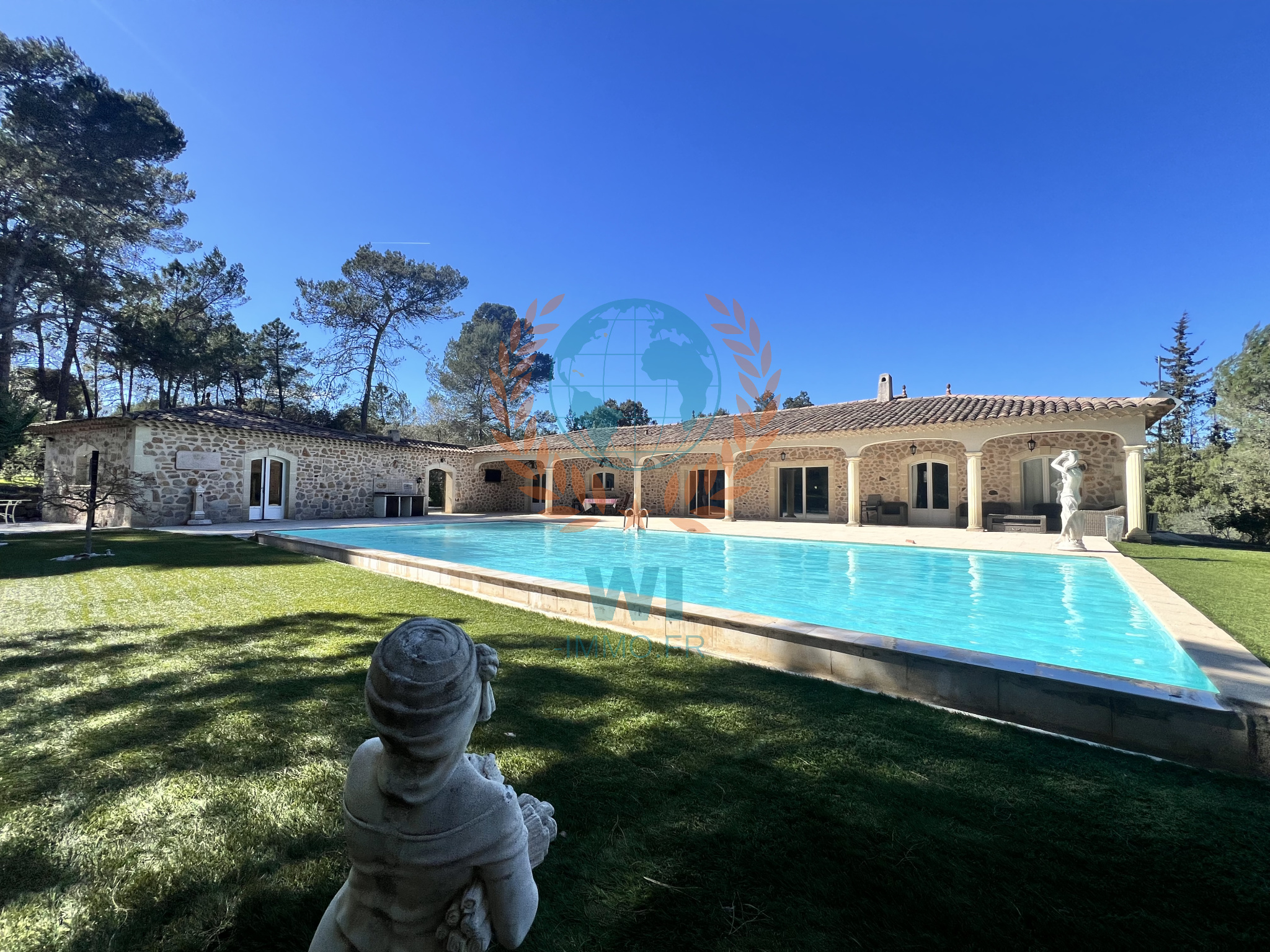 Les Arcs (83460)Nichée dans un cadre exceptionnel, résidentiel et au calme, vous serez séduits par cette propriété unique et atypique en Pierres de 177 m² hab Composée d'une grande pièce de vie de 55 m² avec ses plafonds à la française et son coin cheminée, une cuisine provençale indépendante équipée, une suite parentale avec balnéo, douche et dressing, 2 chambres avec salle d'eau. Un studio indépendant de 33 m² idéal pour recevoir famille et amis ou un rendement locatif saisonnier. Une large terrasse couverte donnant sur une magnifique piscine à débordement de 15 x 7 m, un superbe jardin paysagé de 4000 m² sans vis-à-vis. Le must de cette demeure : un sous-sol de 170 m² facilement aménageable en salle de sport, salle de jeux ou salle de cinéma... Climatisation, cheminée, adoucisseur, double portail électrique, arrosage auto, éclairage auto.... Etat impeccable, aucun travaux à prévoir !!